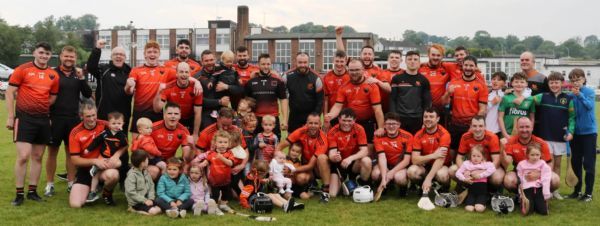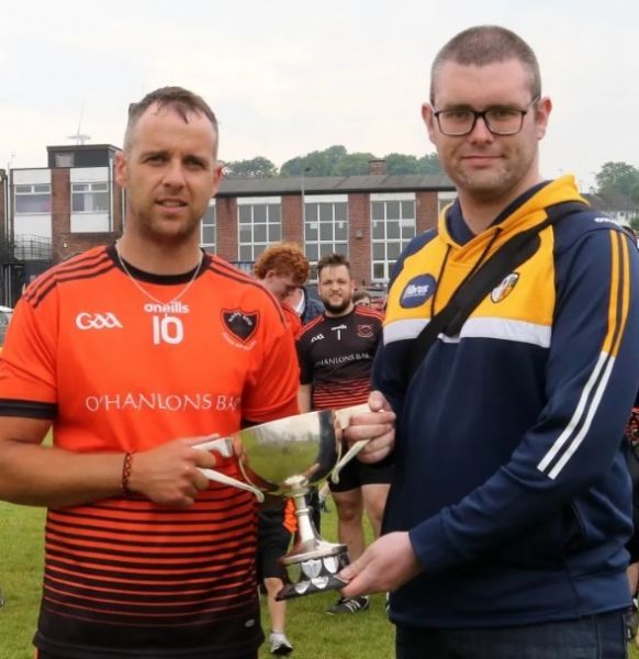 After the game North Antrim PRO, Darach O’Mullan presented the Junior Feis Cup to Cloughmill’s captain Liam Kearns and the team was joined in a celebration photograph by their young fans after the presentation