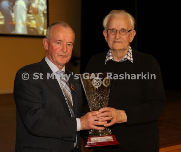 St. Mary's hosted a evening of celebration in St. Olcan's Parish Centre on Friday 20th May to celebrate the election of club member Michael Hasson as President of Ulster GAA. Fellow Gaels from across Antrim and Ulster gathered to recount stories of their encounters with Michael from his playing and refereeing days and service on committees in Rasharkin, South West Antrim, County and more recently at Ulster level. All the guests speaking noted that while Michael was mild mannered in his dealings, he had unerring judgement and a talent for getting things done no matter what level he served.