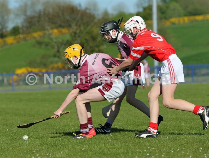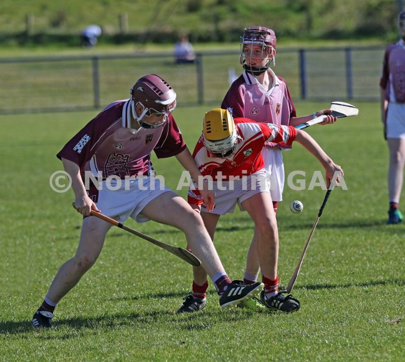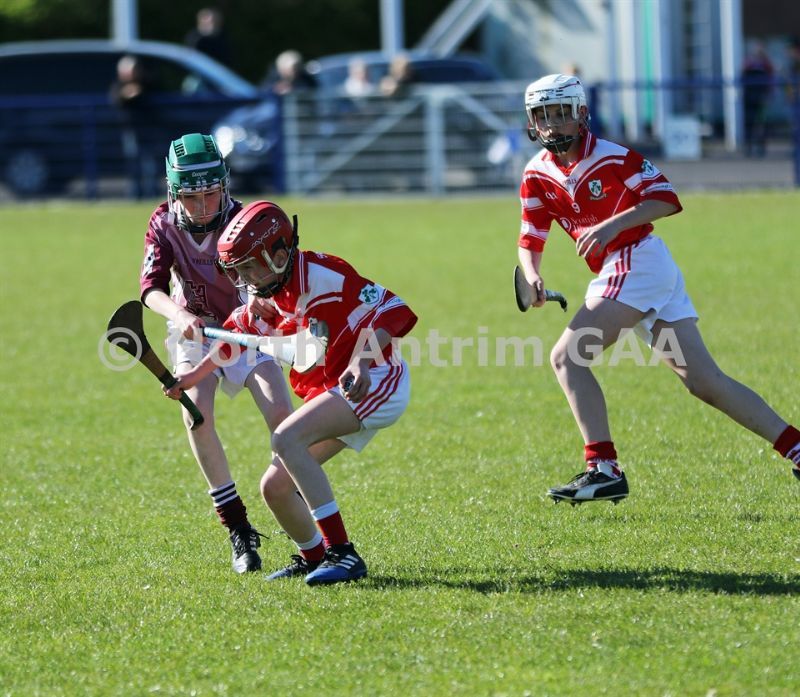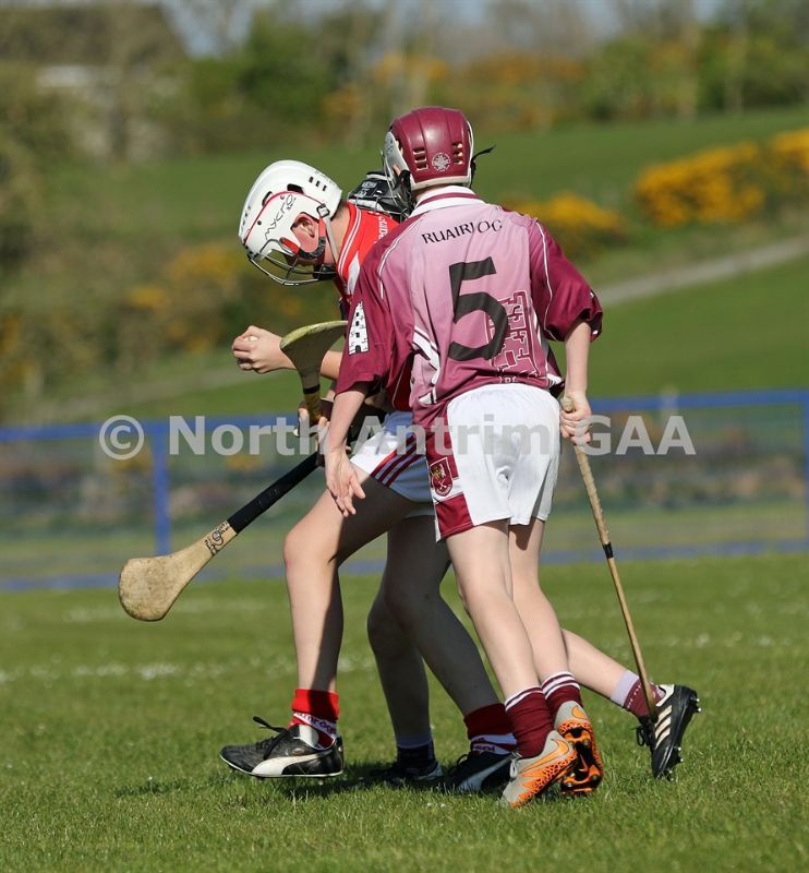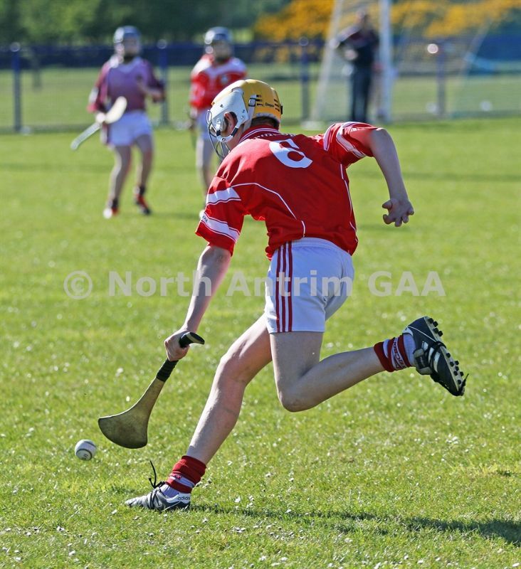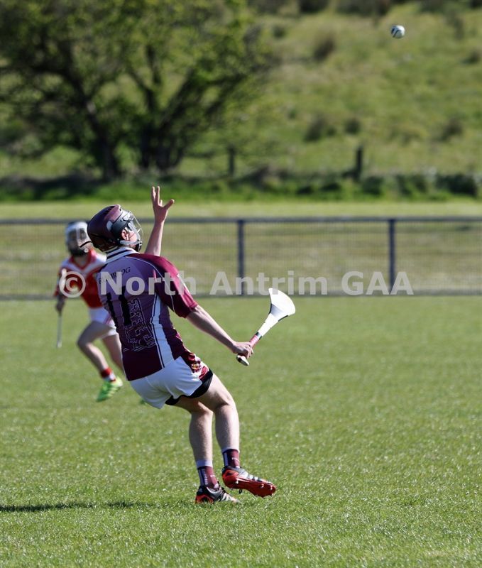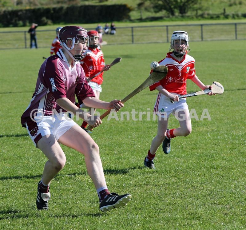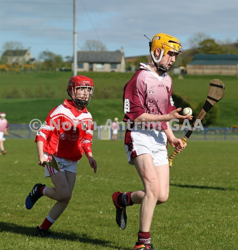 • North Antrim GAA Chairman Owen Elliott presenting Ruairi Og Captain Fiontan McQuillan with the TeamKit U14 Feile A Trophy