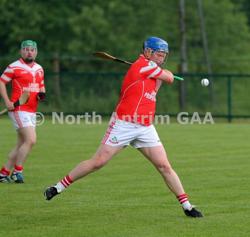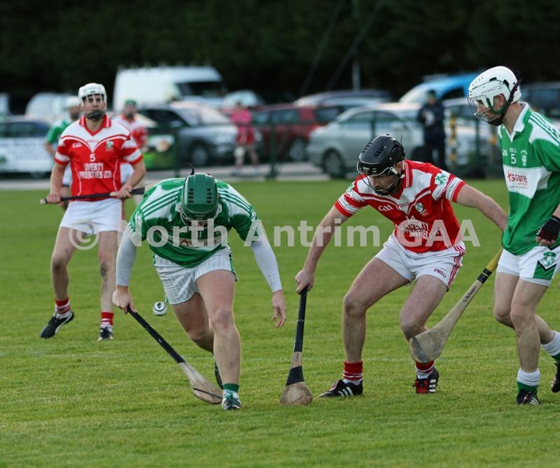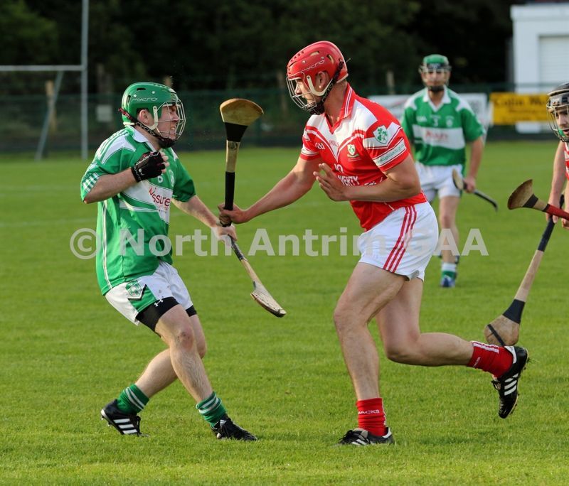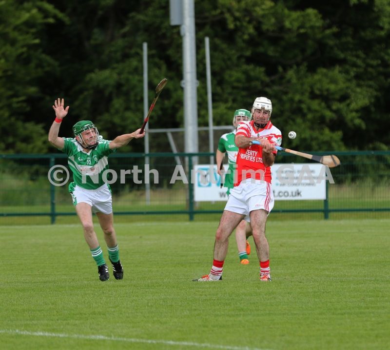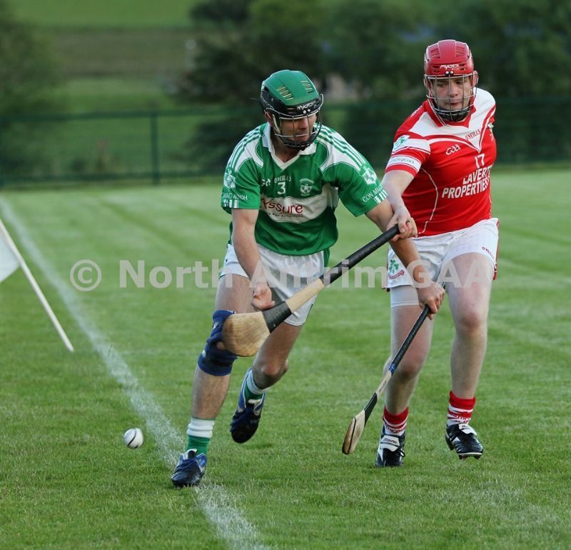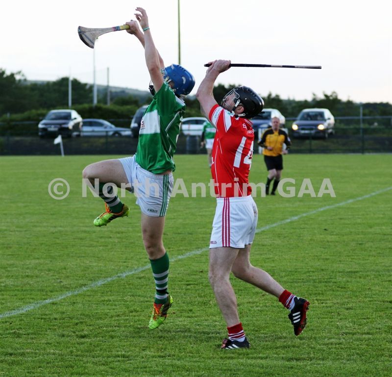 • North Antrim GAA Chairmain Owen Elliott presentring Loughgiel Shamrocks Captain with the Junior Feis Hurling Shield Trophy