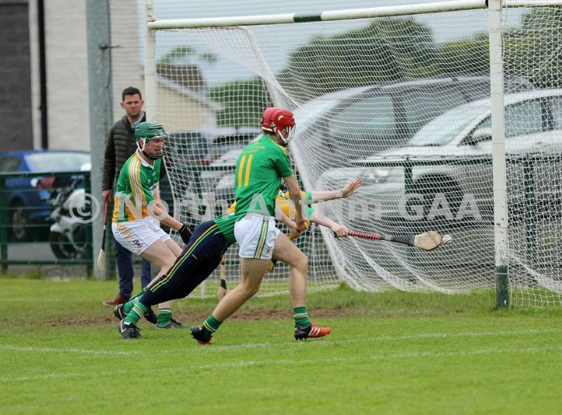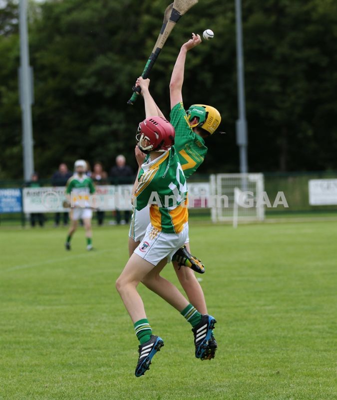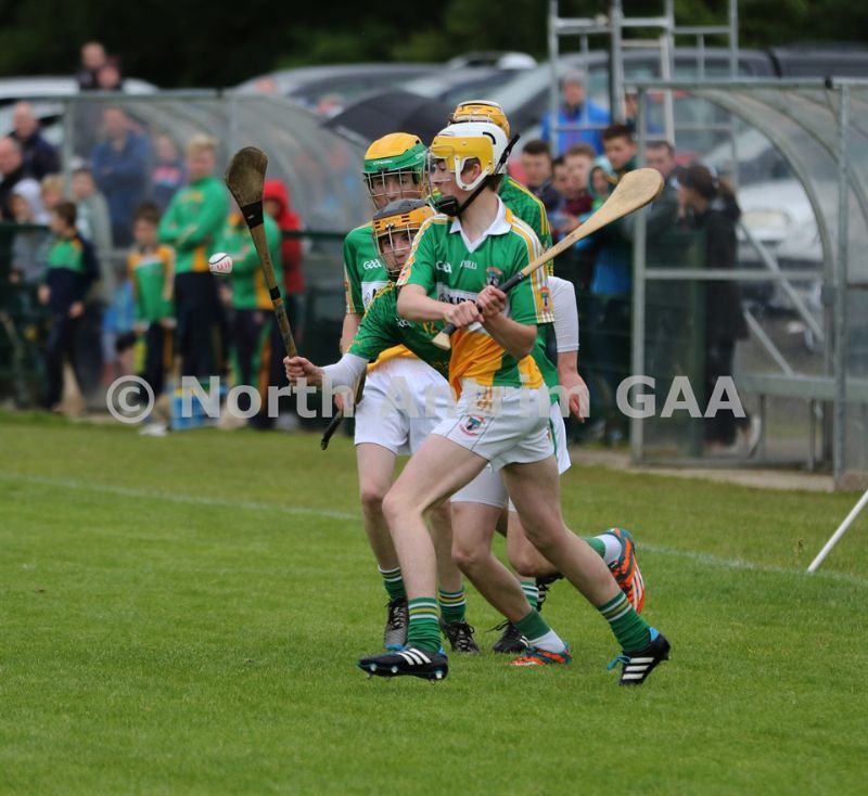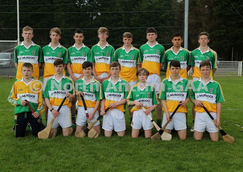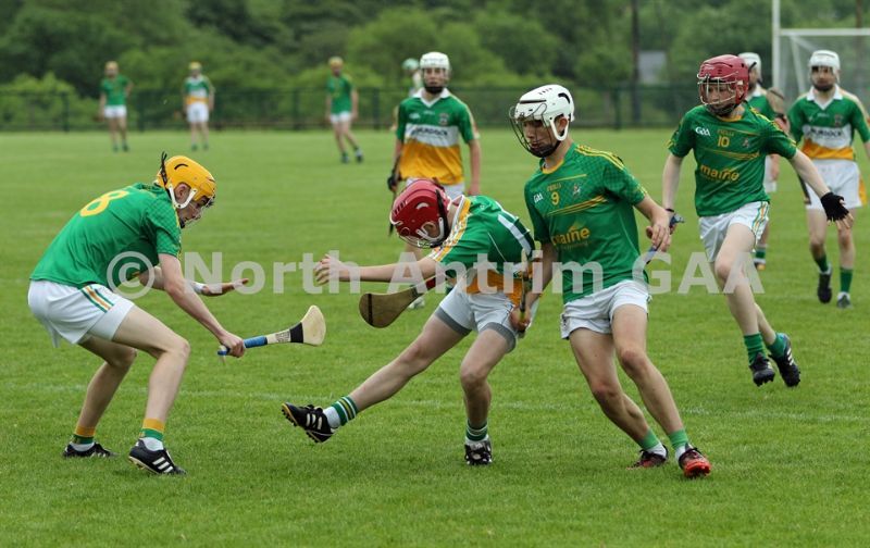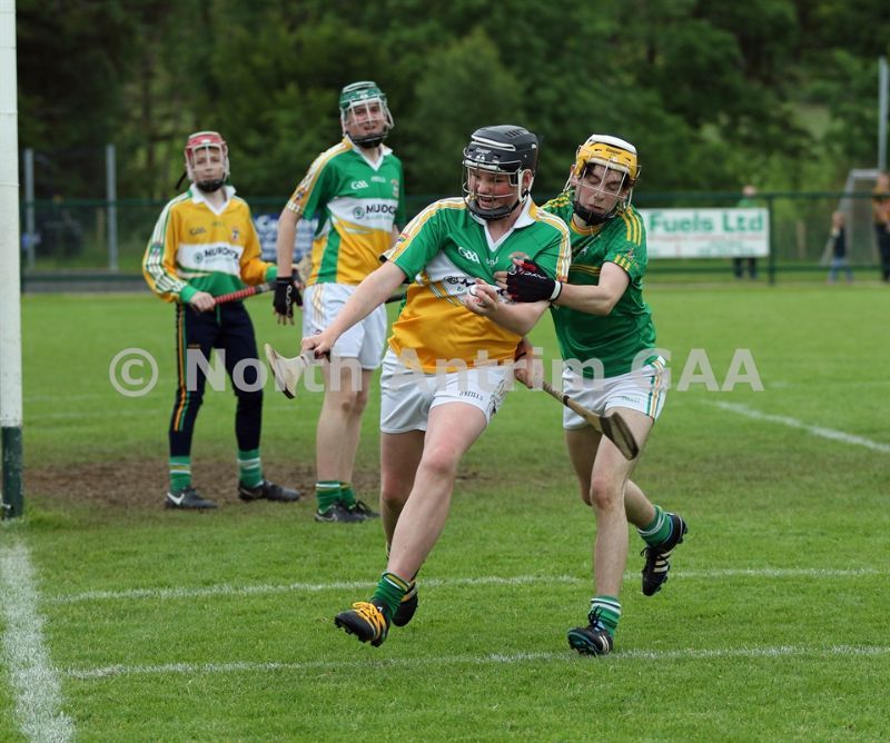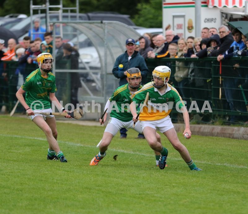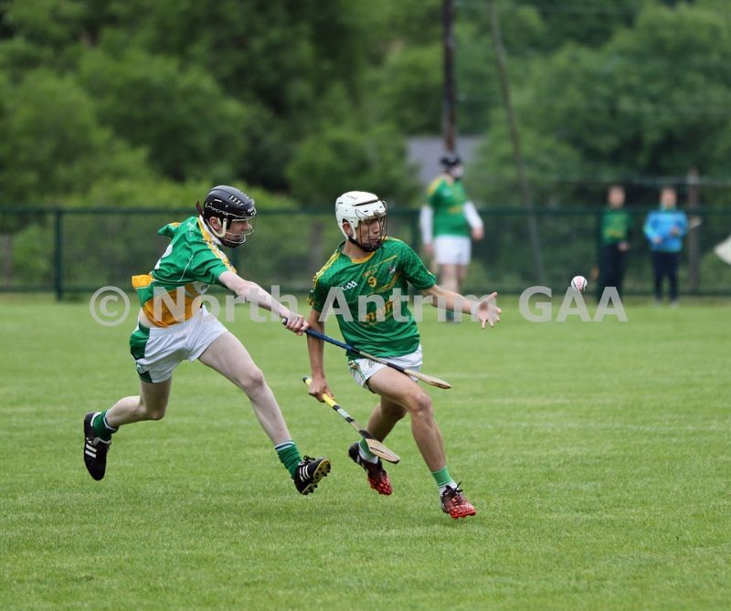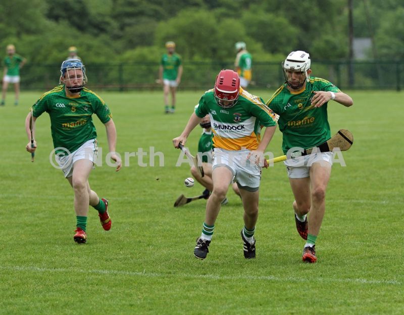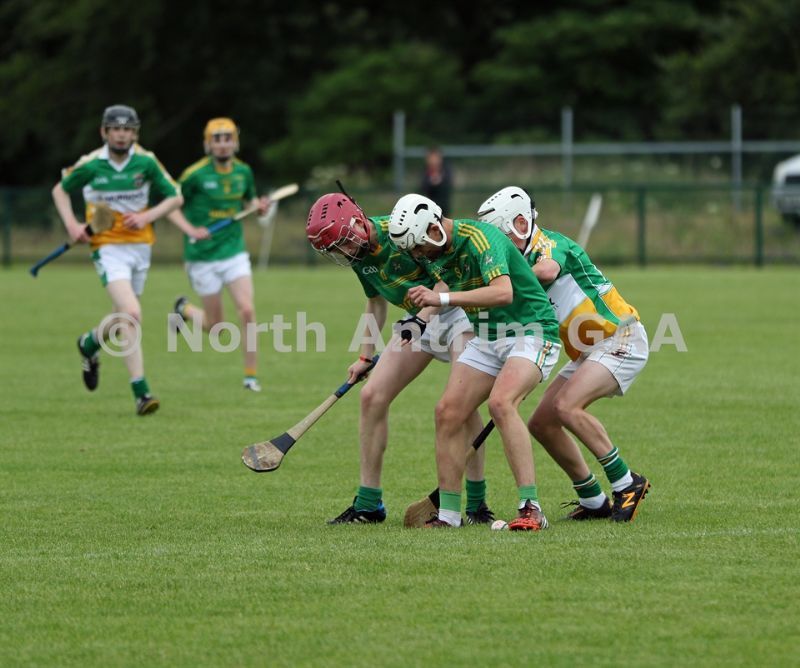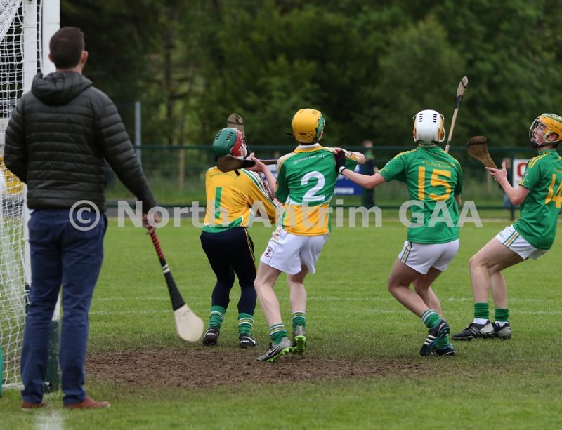 • North Antrim GAA Chairmain Owen Elliott presenting McMullan Cup Final Captain Aaron Crawford with the McMullan Cup Final Trophy
