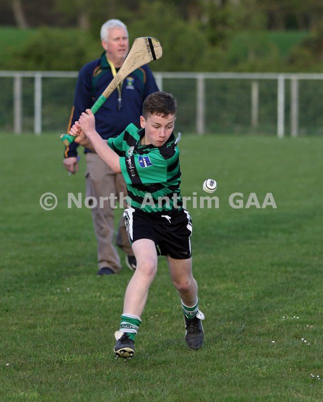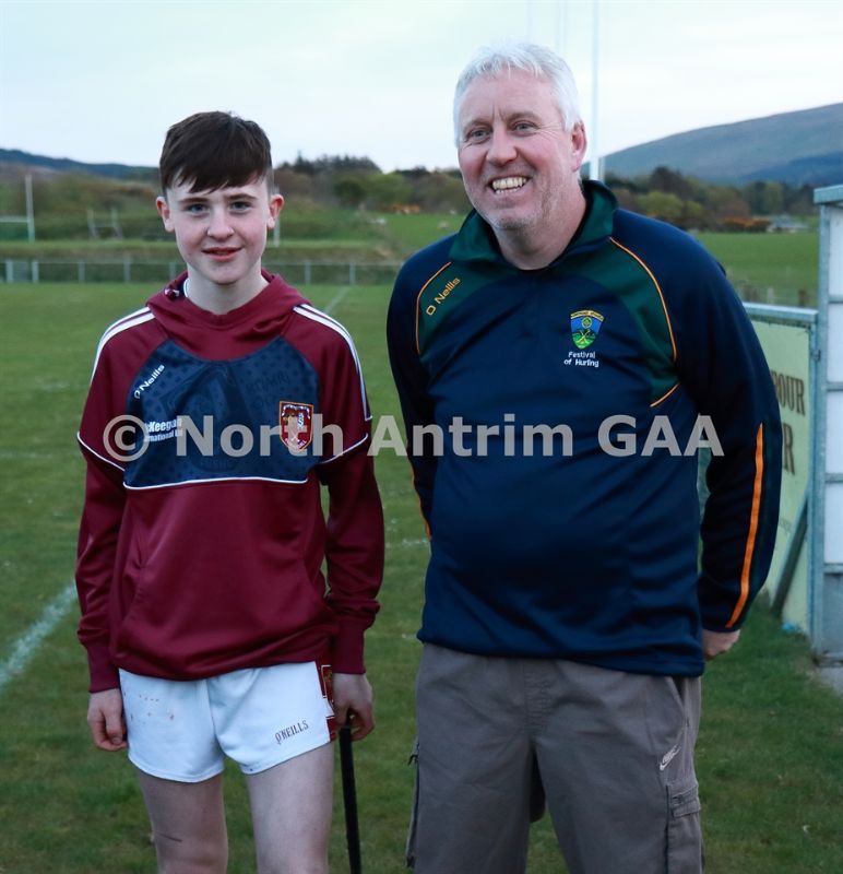 • North Antrim Youth Development Officer Paddy Gray alongside North Antrim Féile Skills winner Fiontan McQuillan from Ruairi Og Cushendall