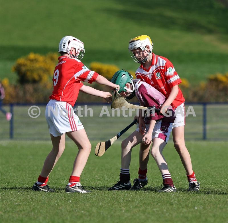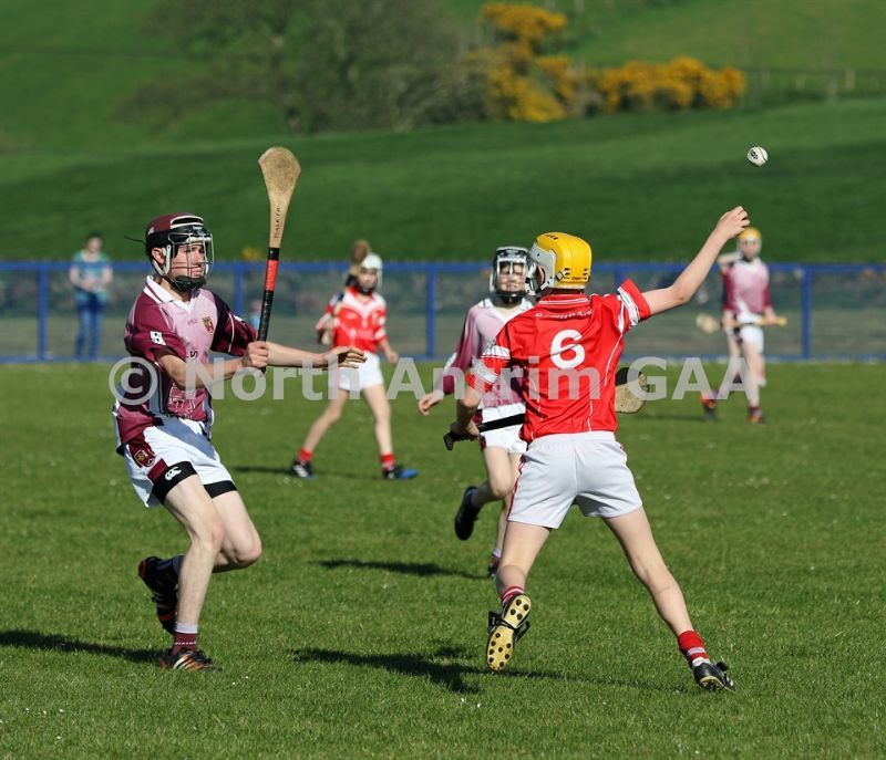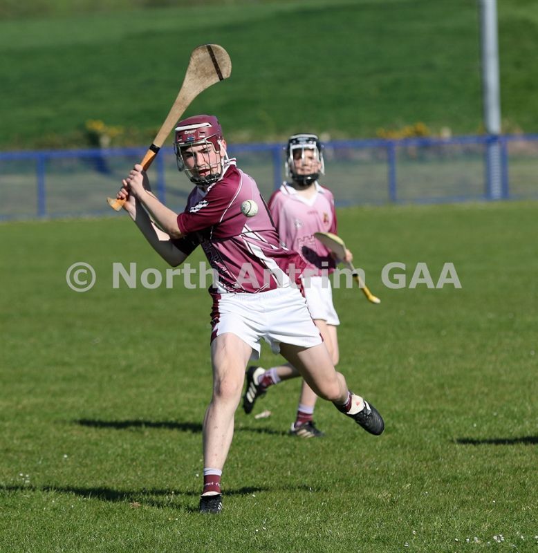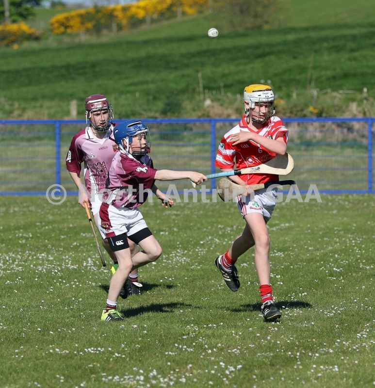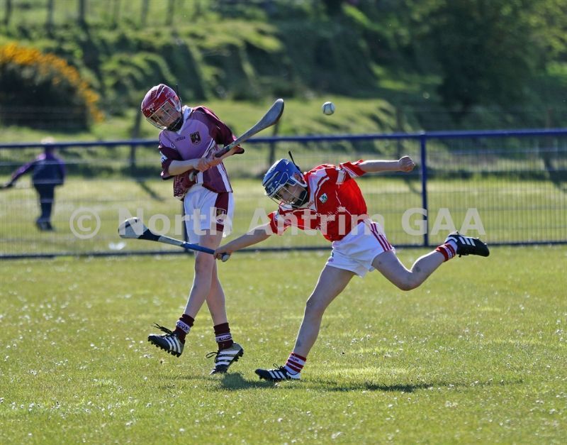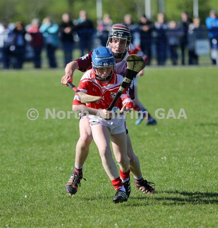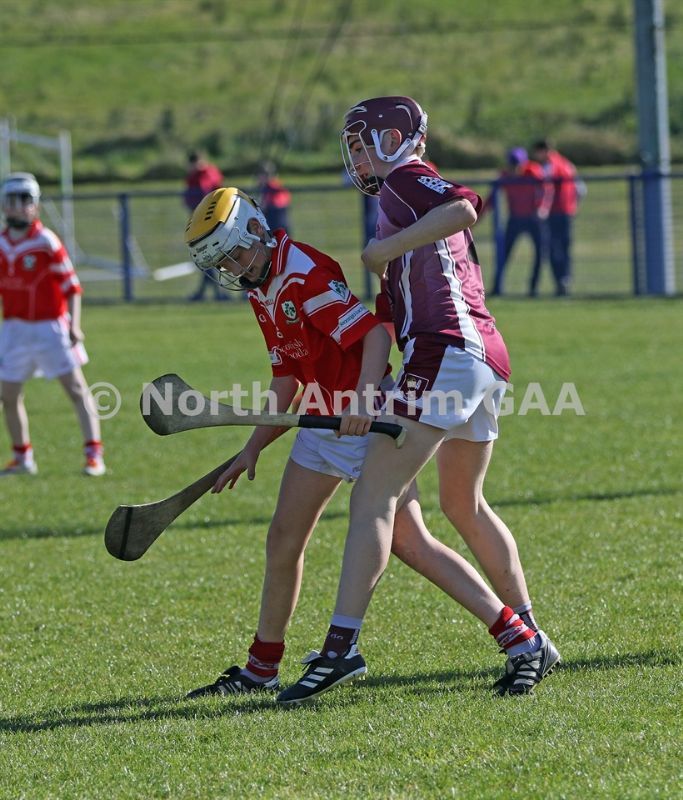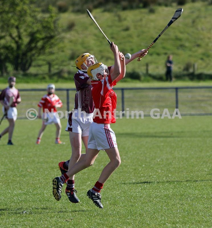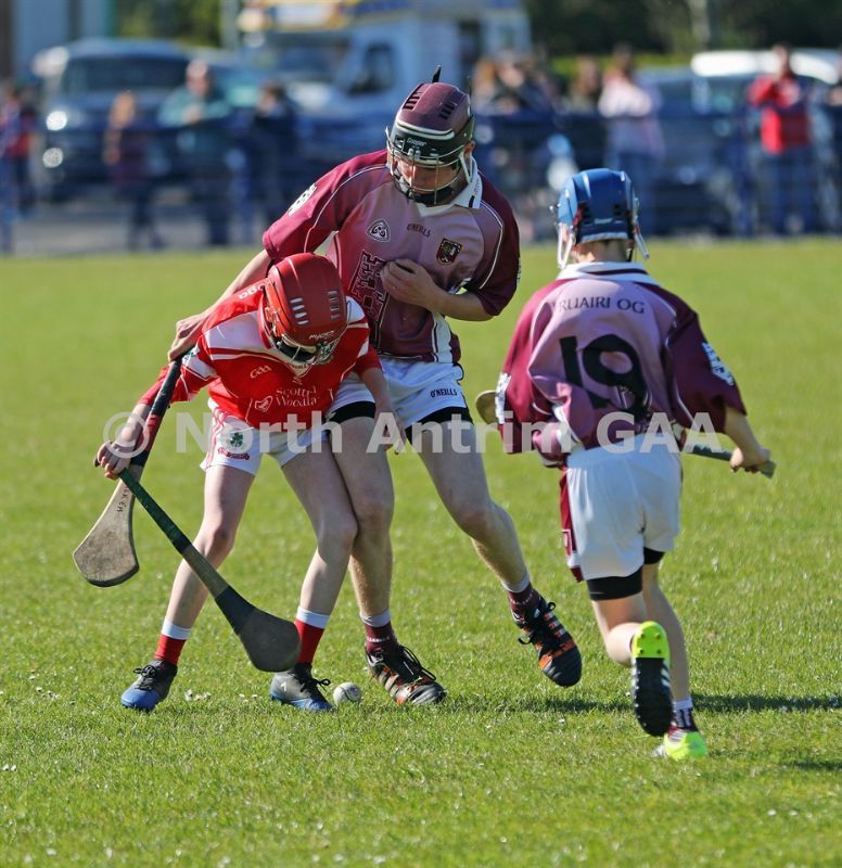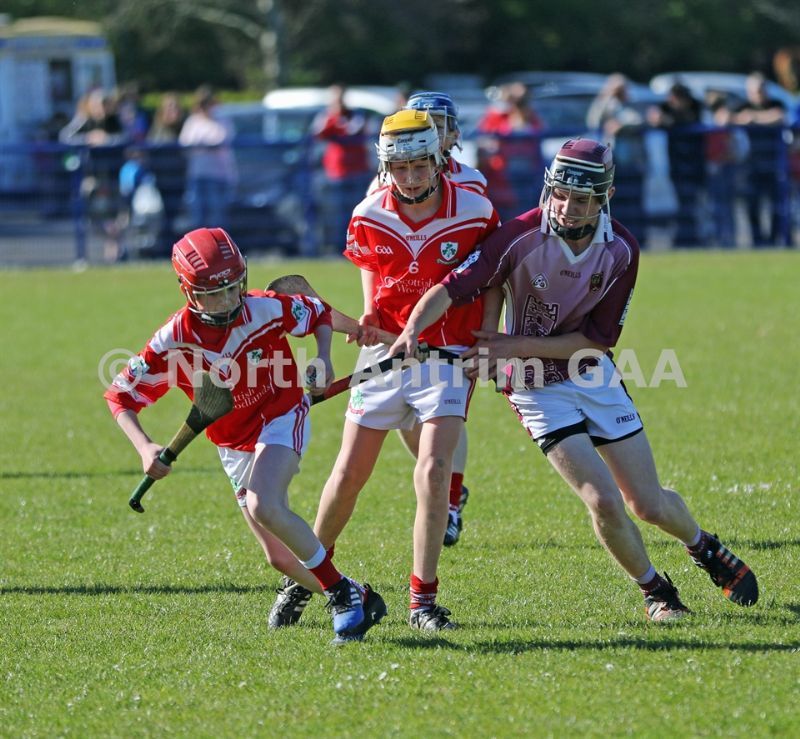 • North Antrim GAA Chairman Owen Elliott presenting Ruairi Og Captain Fiontan McQuillan with the TeamKit U14 Feile A Trophy