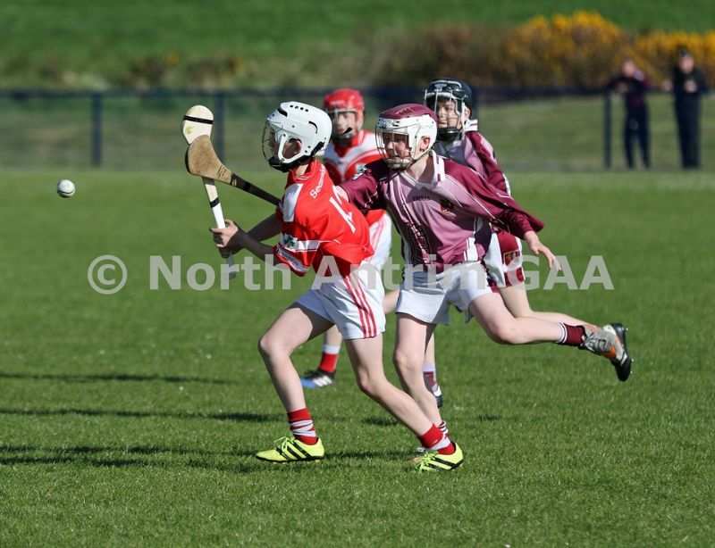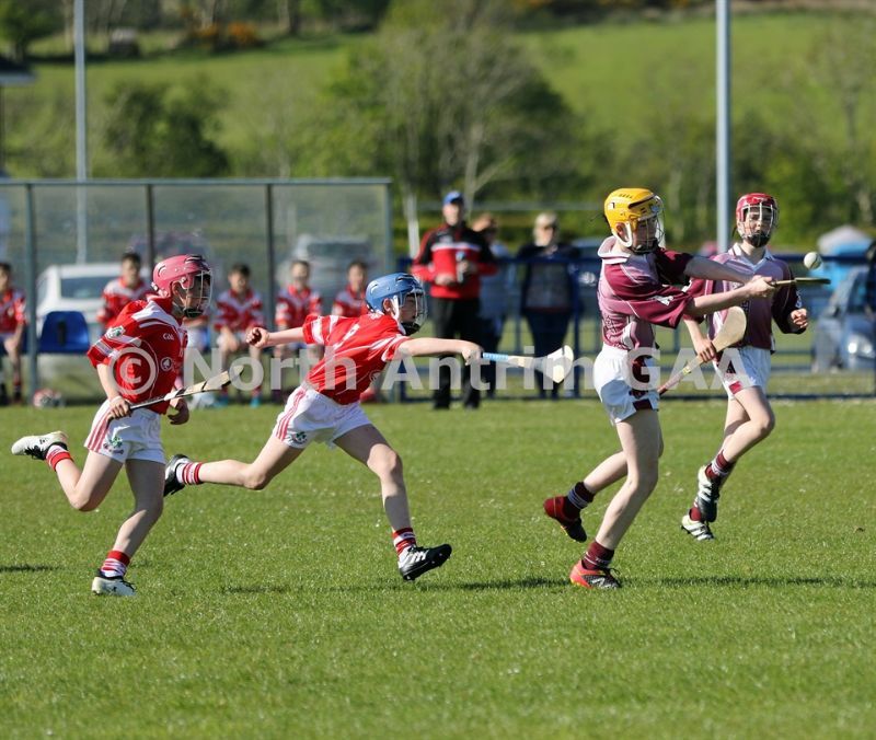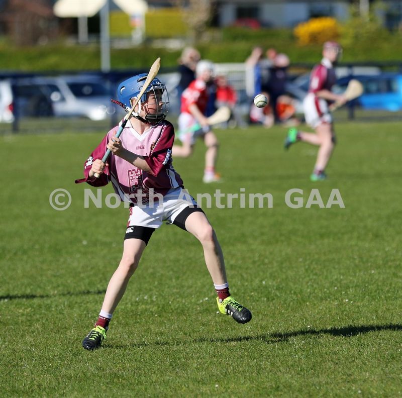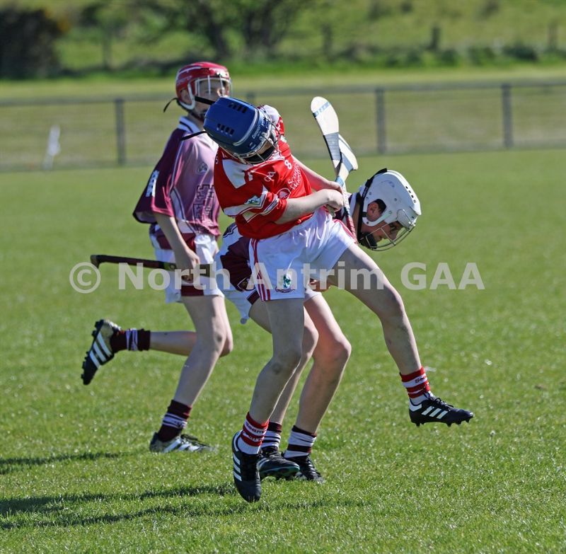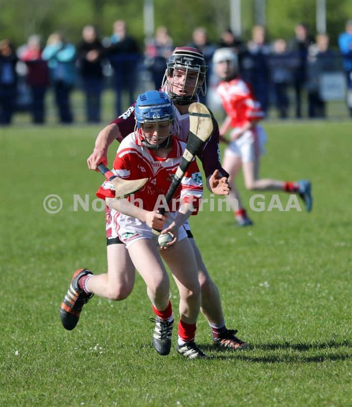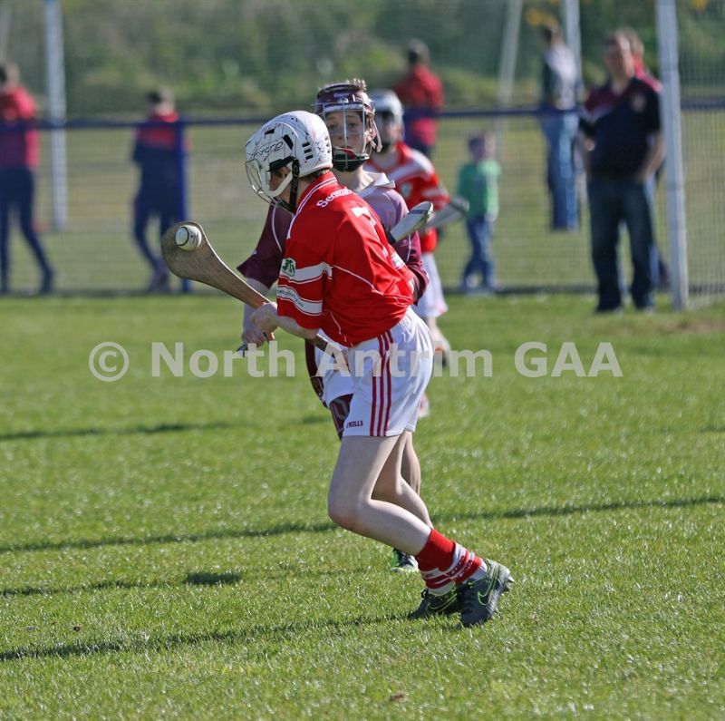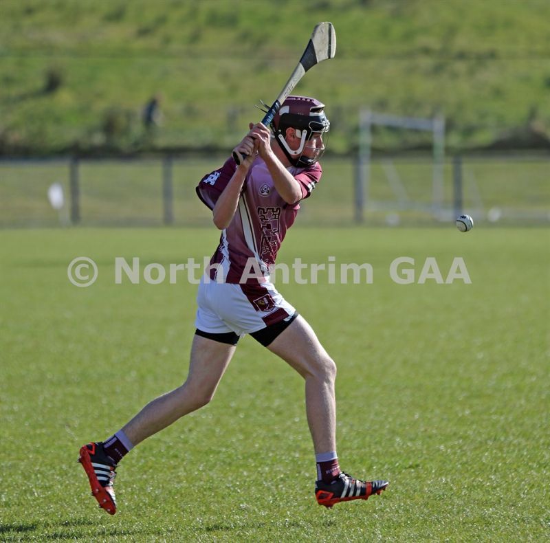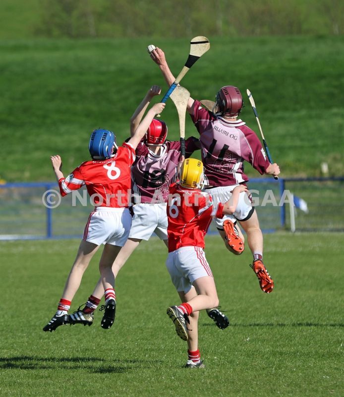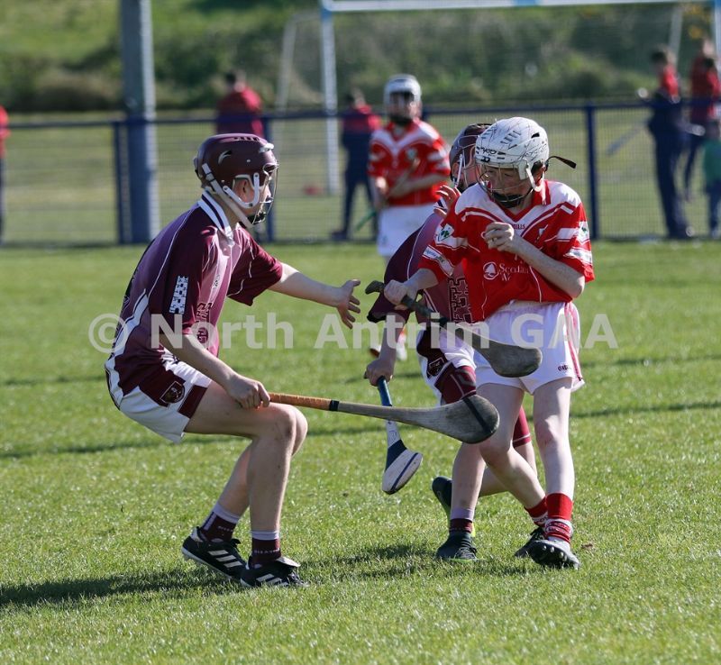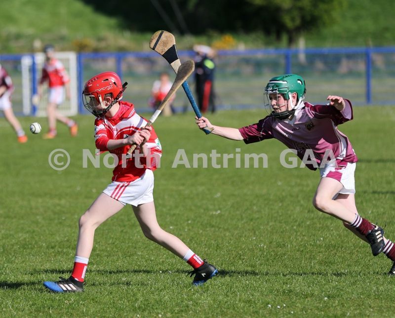 • North Antrim GAA Chairman Owen Elliott presenting Ruairi Og Captain Fiontan McQuillan with the TeamKit U14 Feile A Trophy