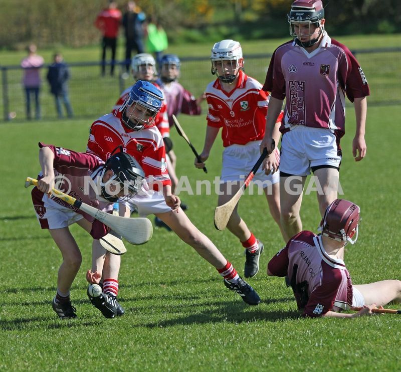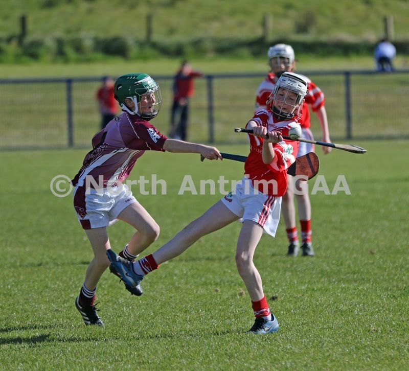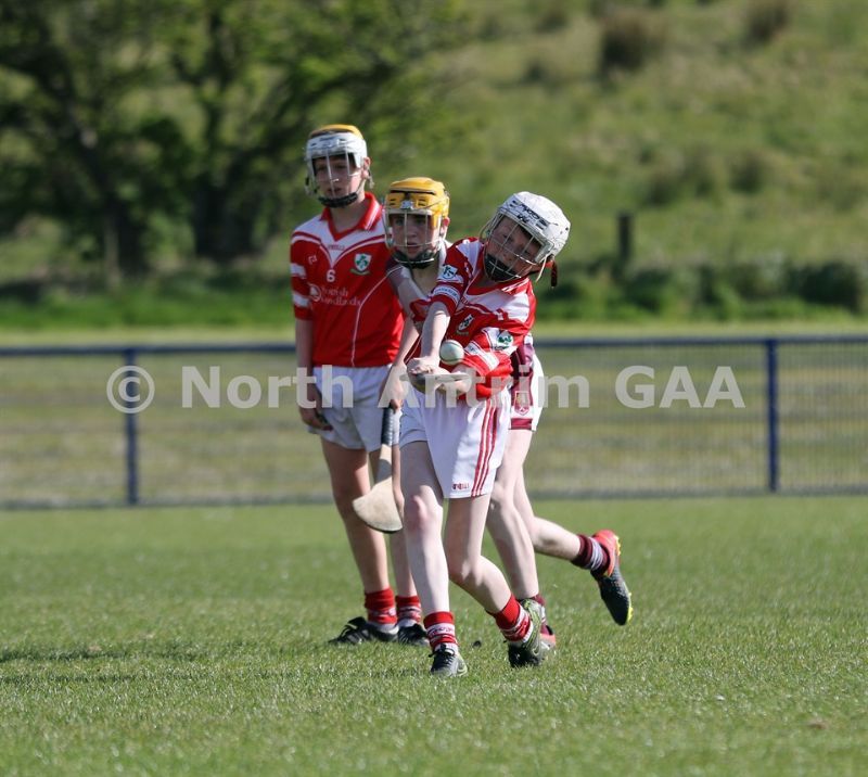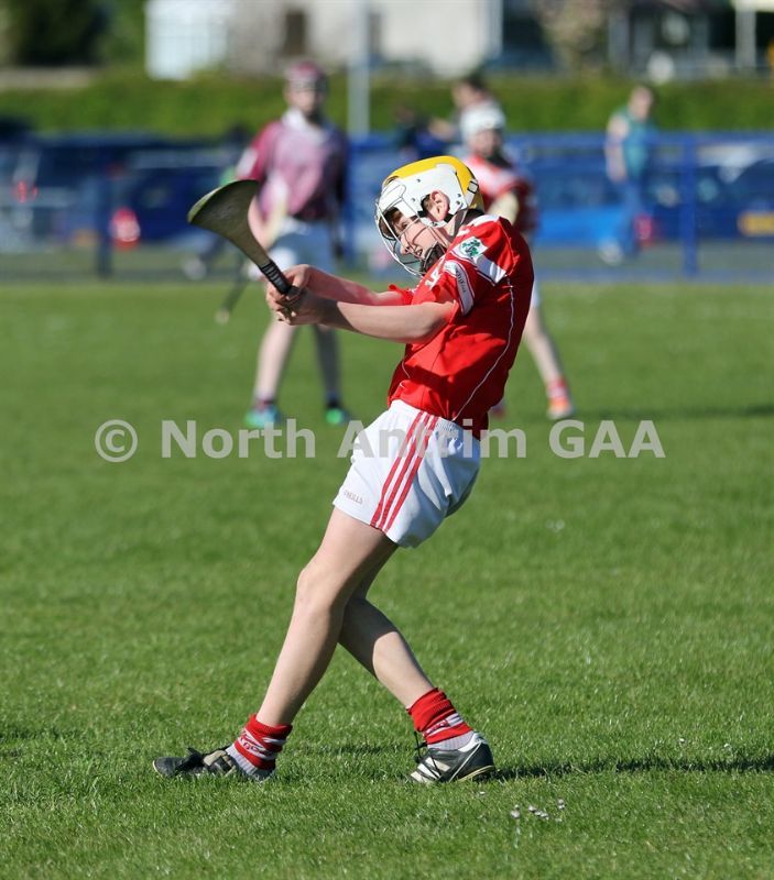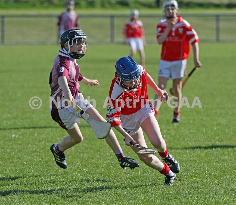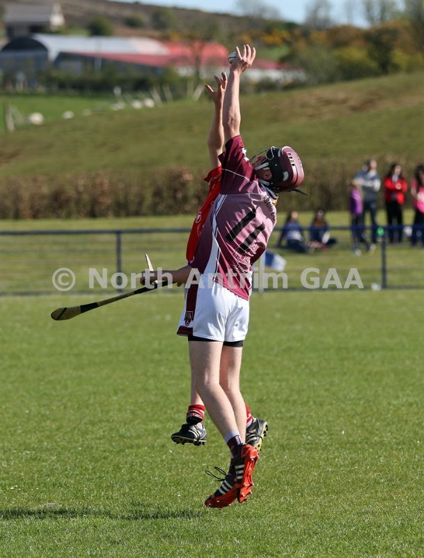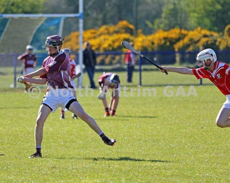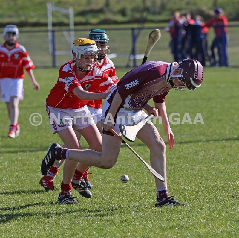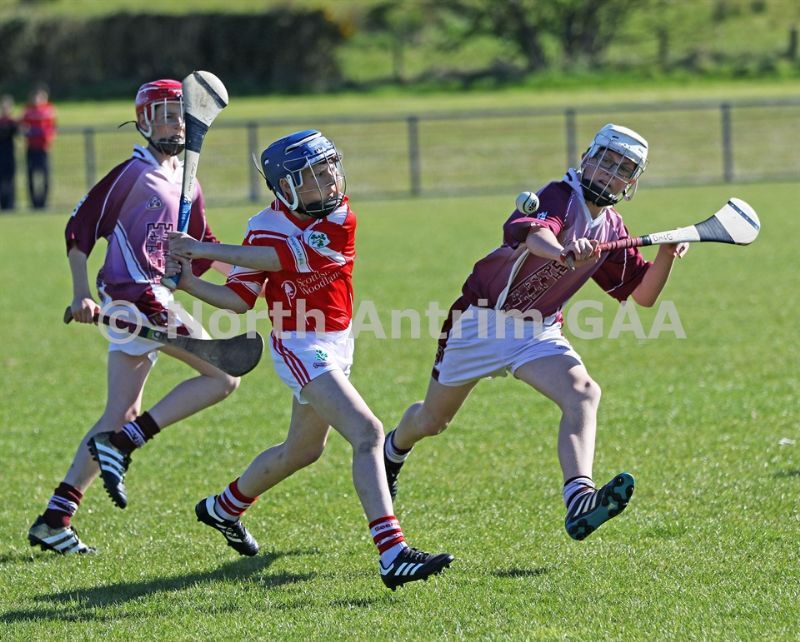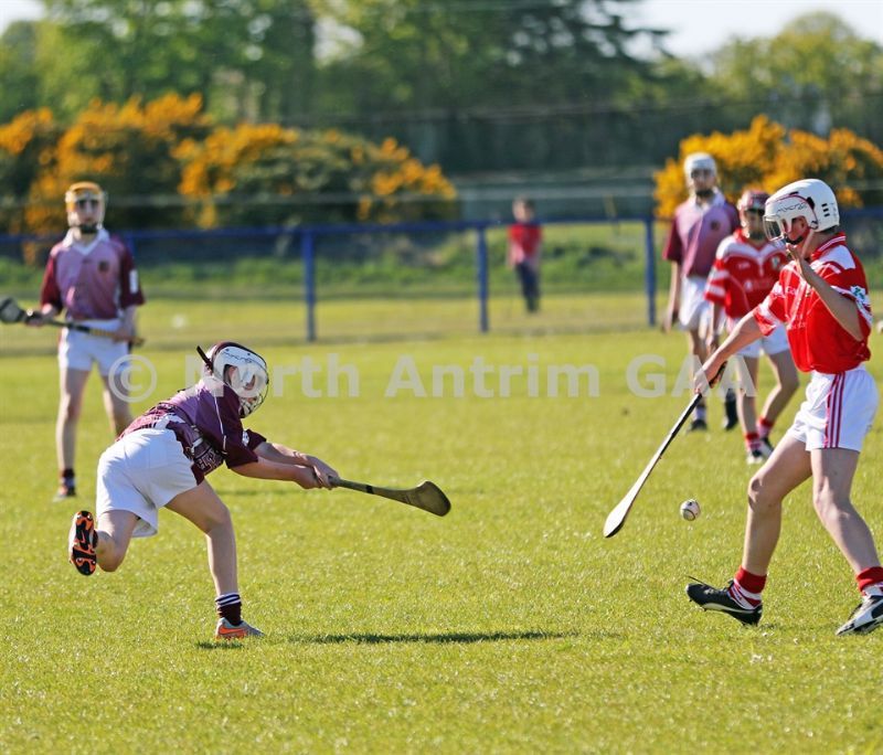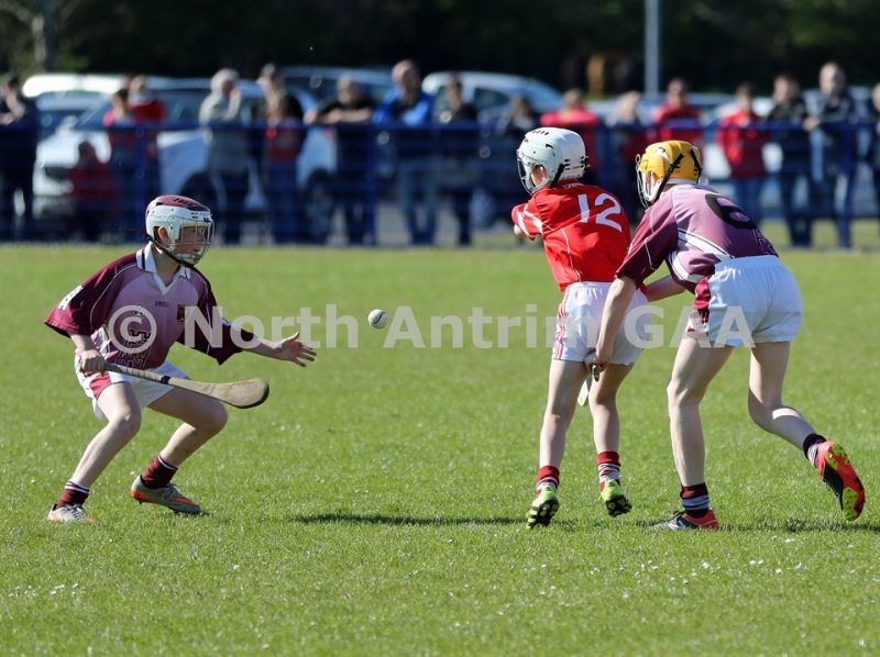 • North Antrim GAA Chairman Owen Elliott presenting Ruairi Og Captain Fiontan McQuillan with the TeamKit U14 Feile A Trophy