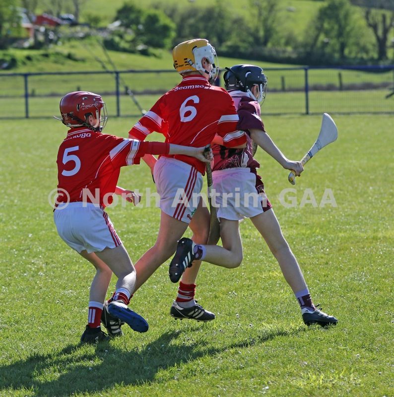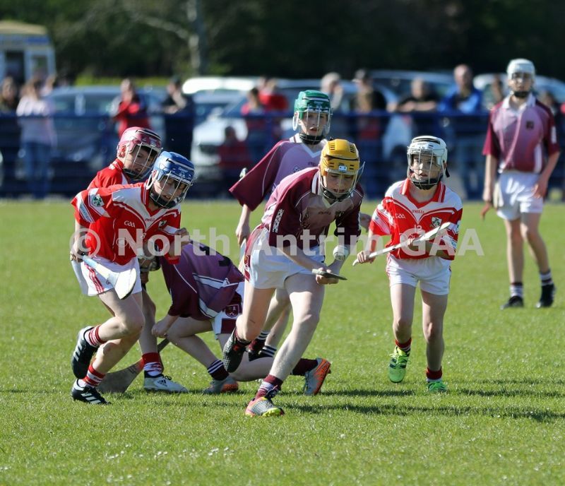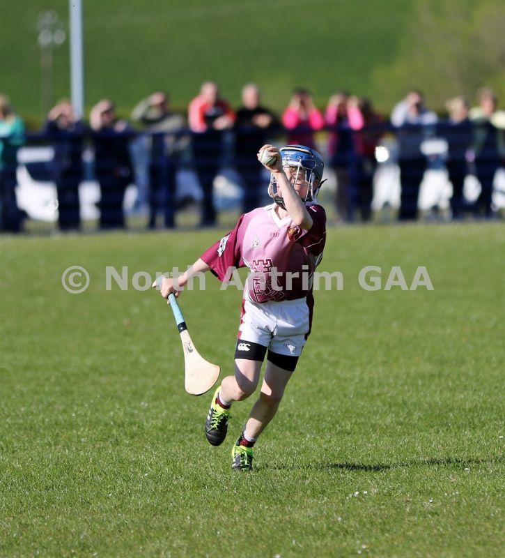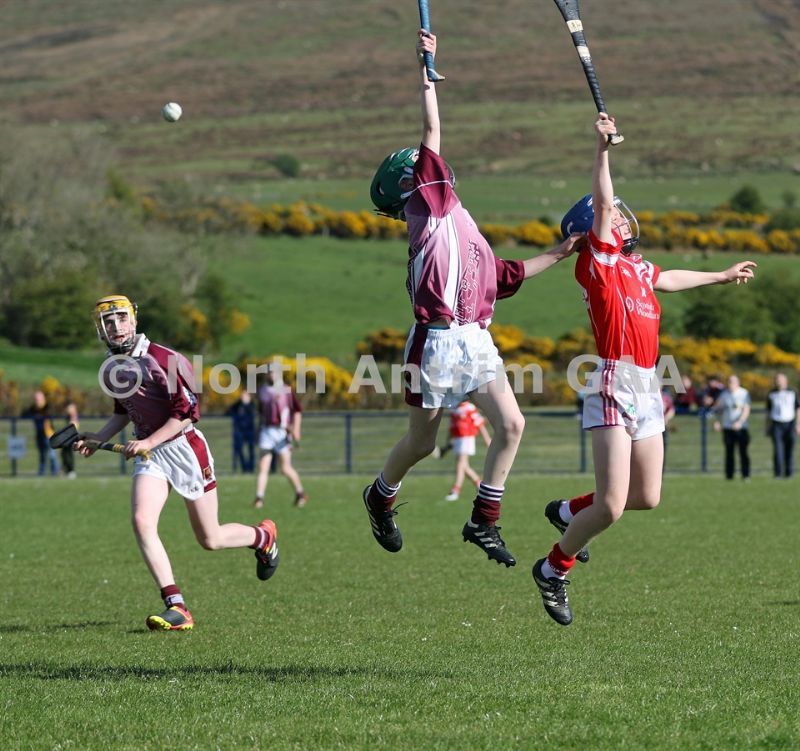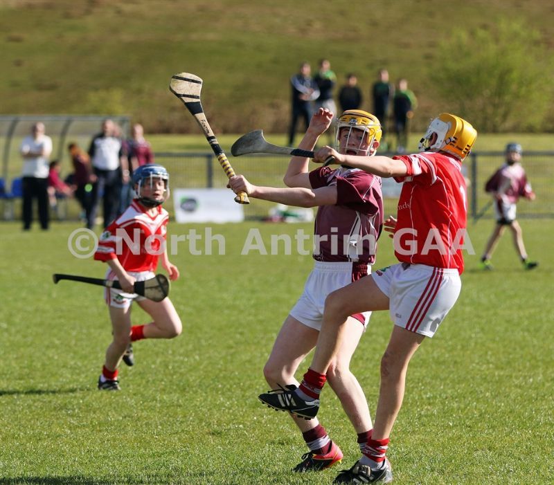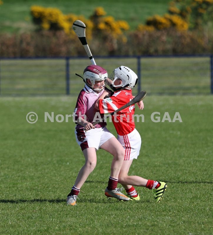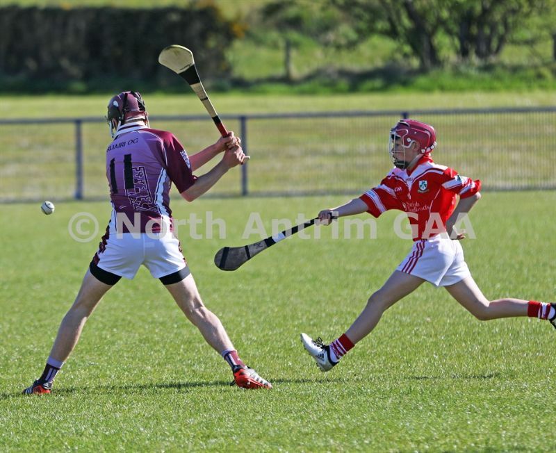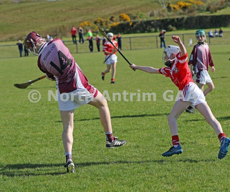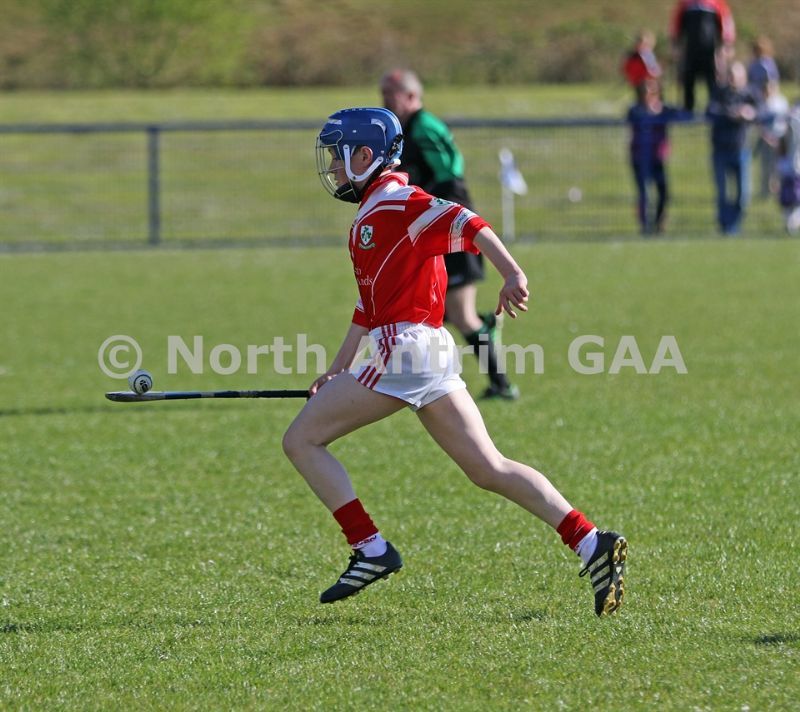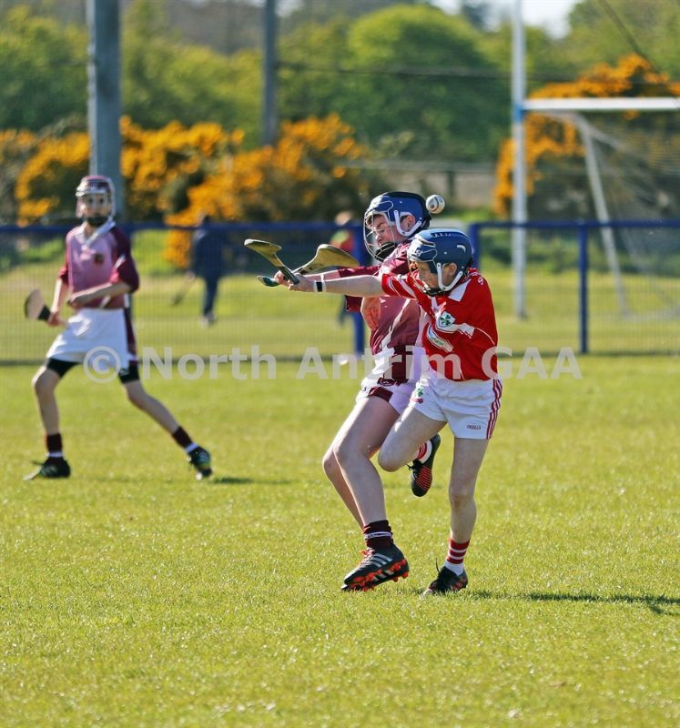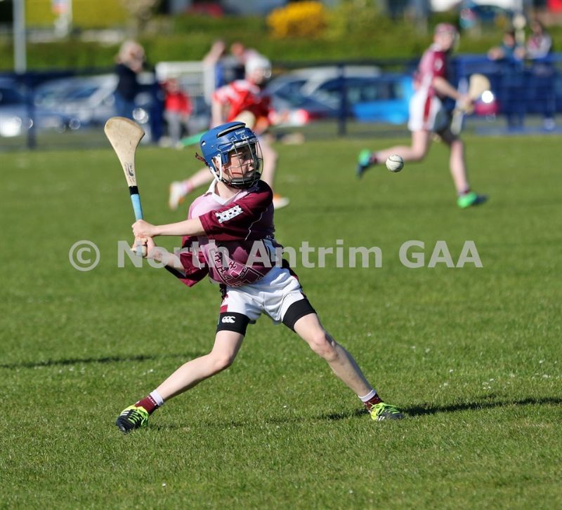 • North Antrim GAA Chairman Owen Elliott presenting Ruairi Og Captain Fiontan McQuillan with the TeamKit U14 Feile A Trophy