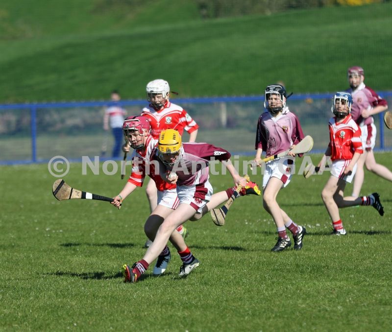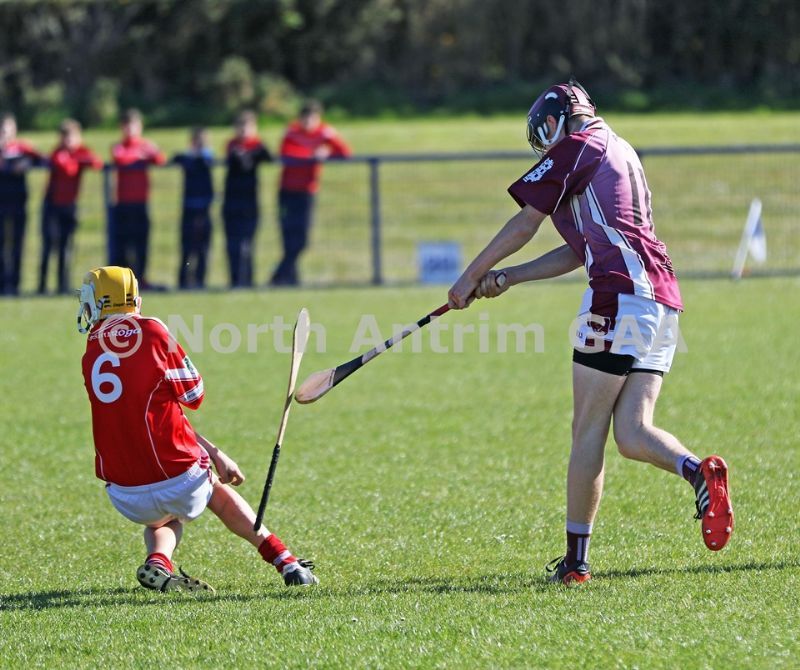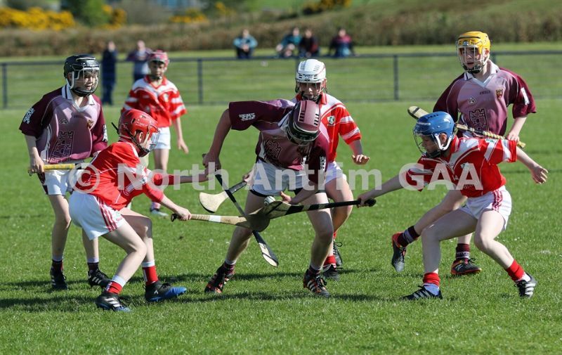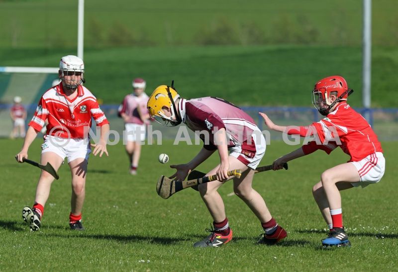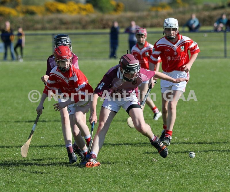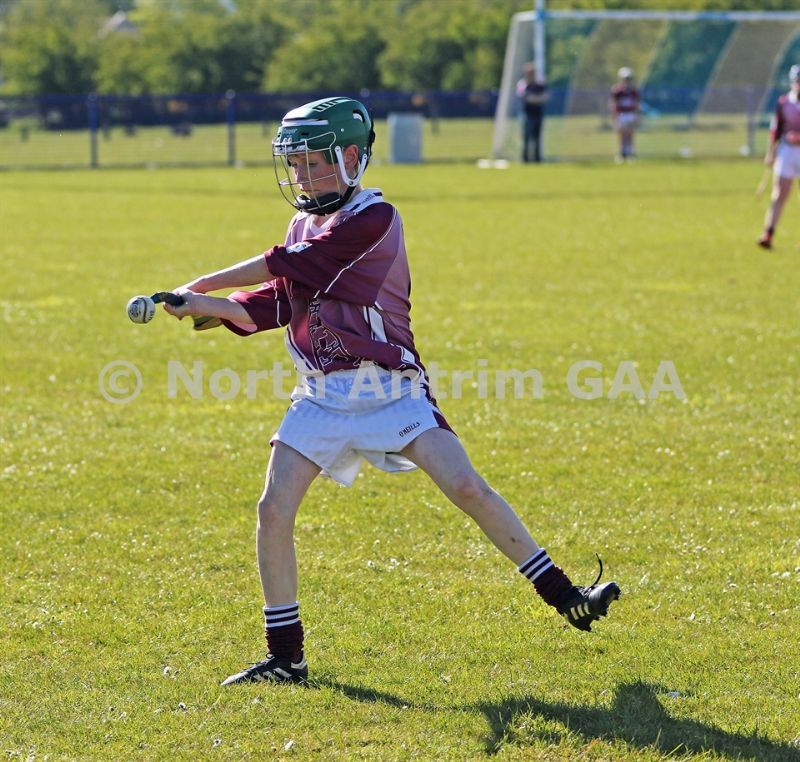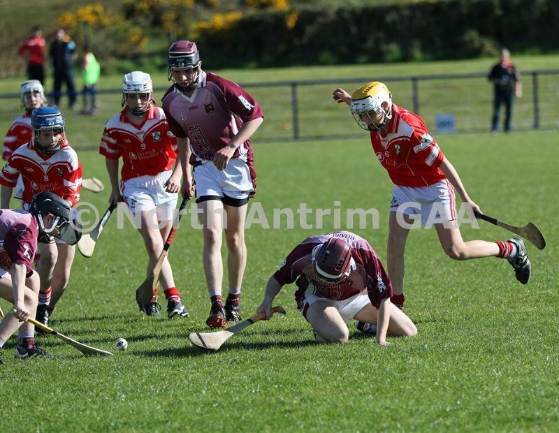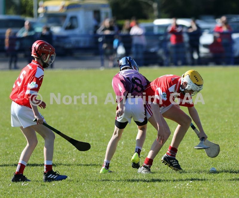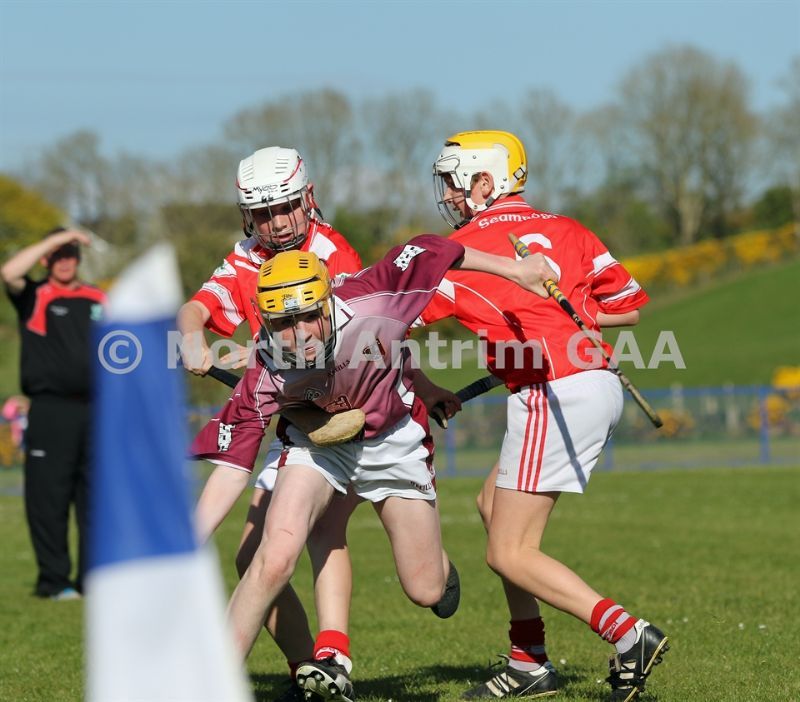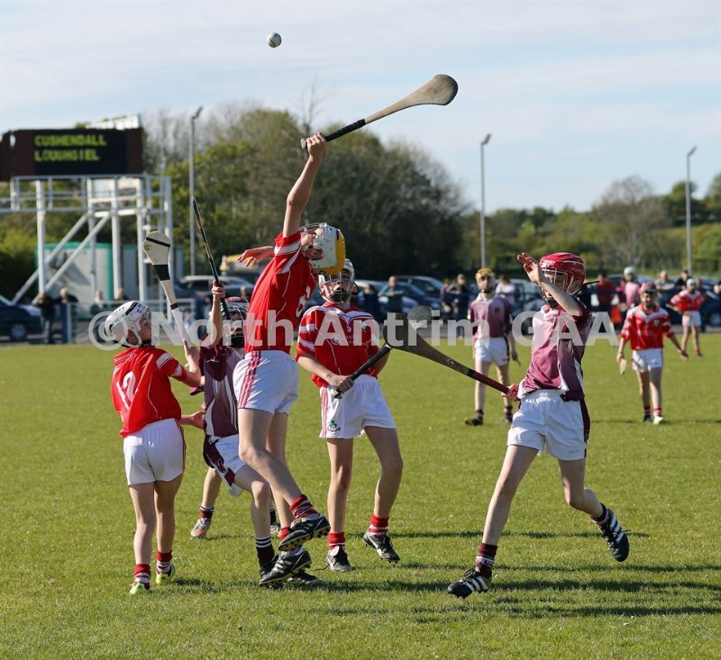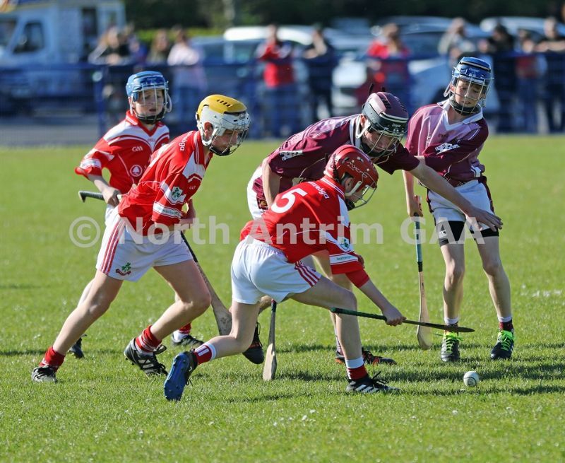 • North Antrim GAA Chairman Owen Elliott presenting Ruairi Og Captain Fiontan McQuillan with the TeamKit U14 Feile A Trophy
