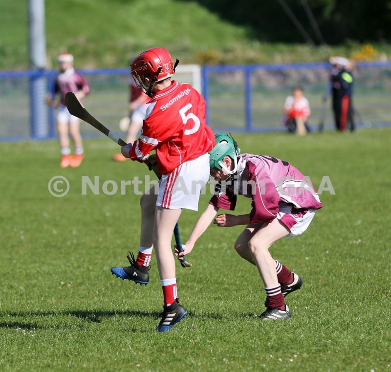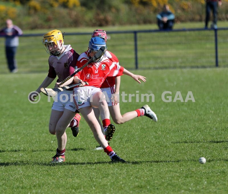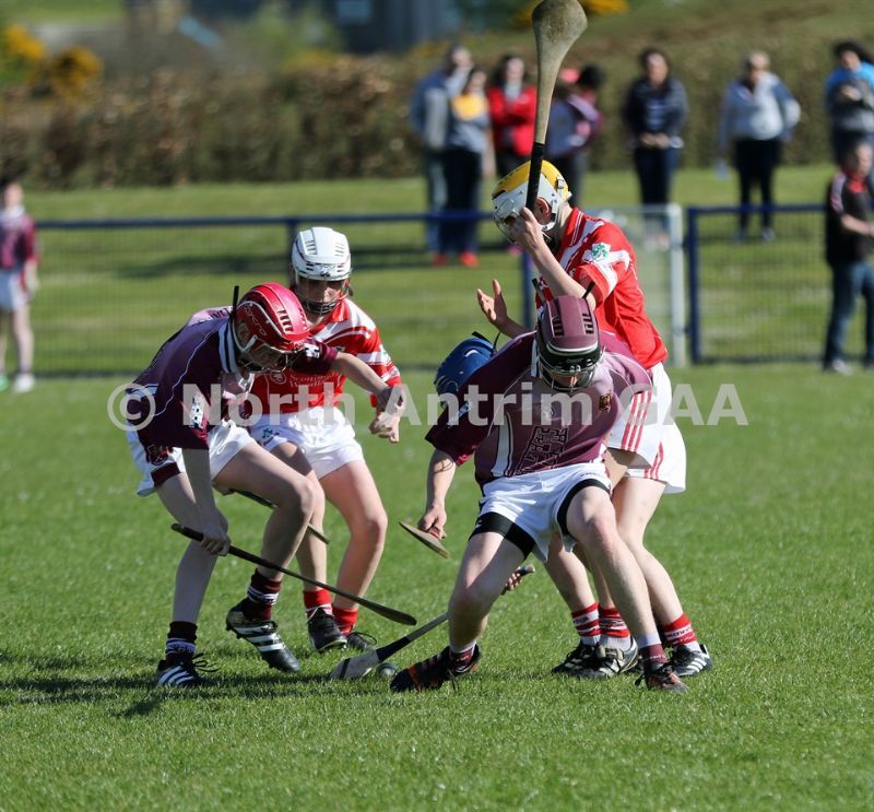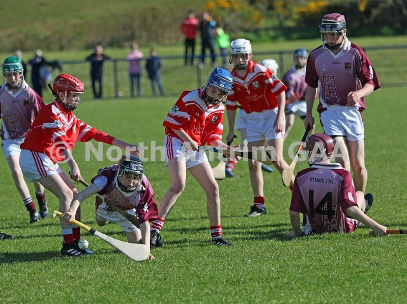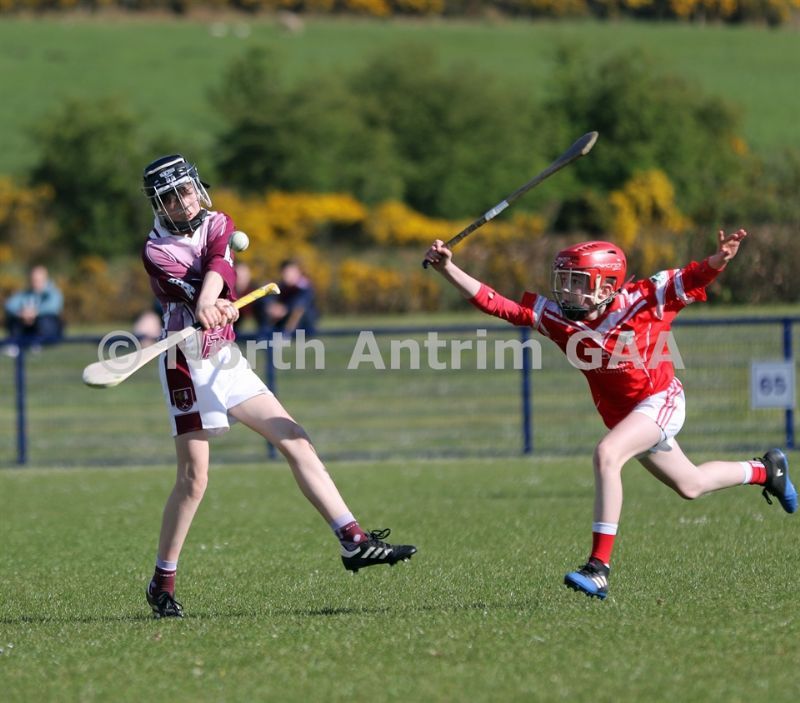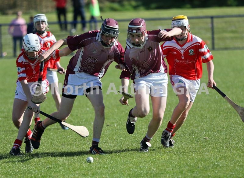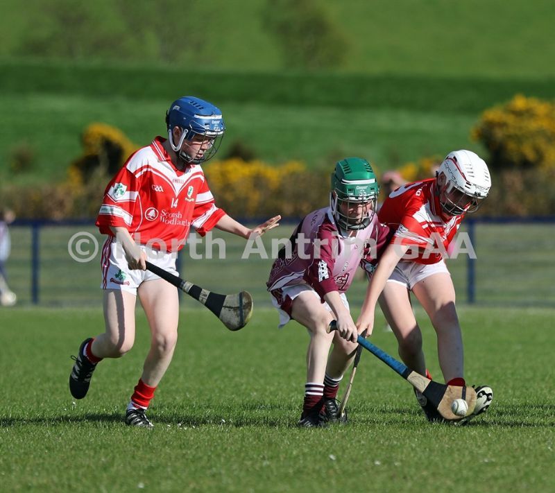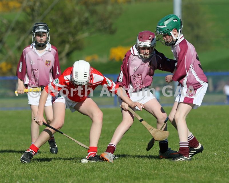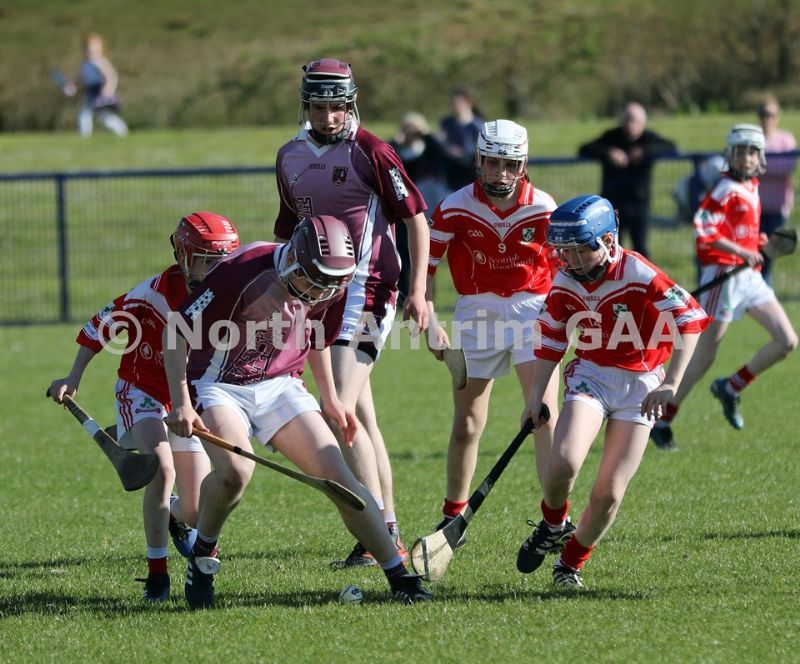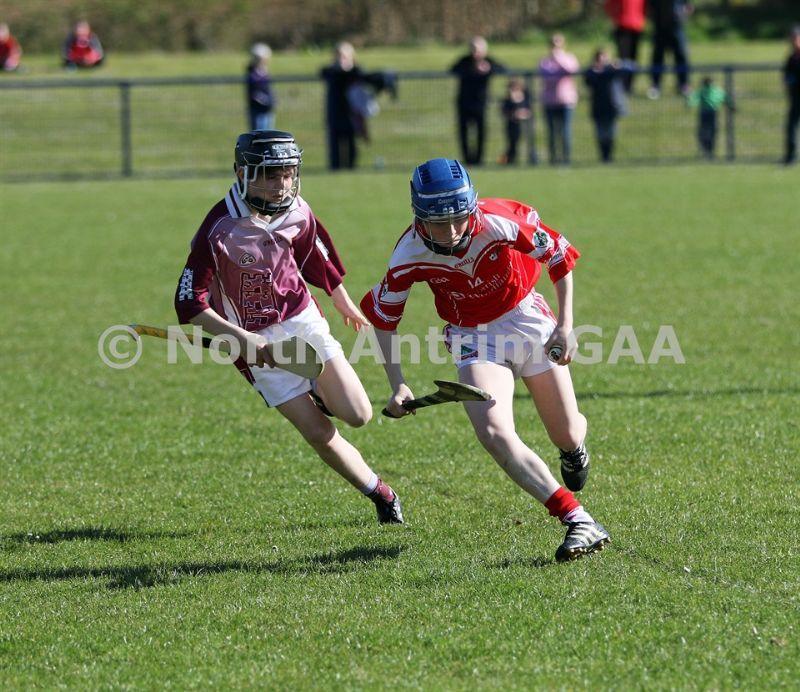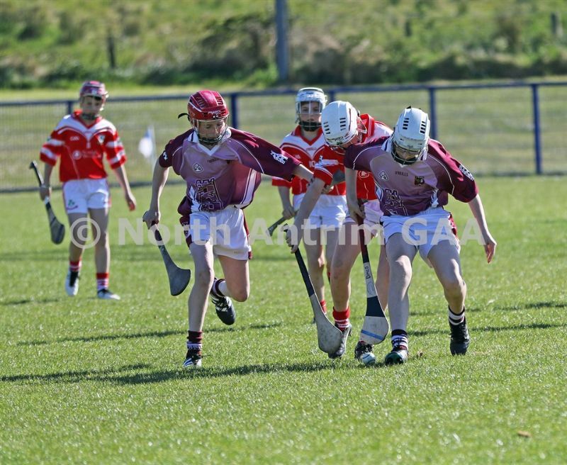 • North Antrim GAA Chairman Owen Elliott presenting Ruairi Og Captain Fiontan McQuillan with the TeamKit U14 Feile A Trophy