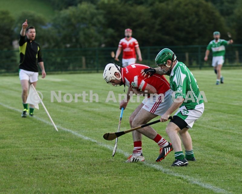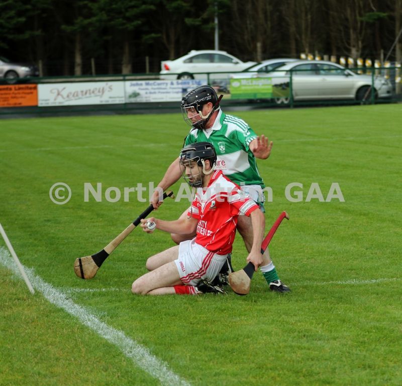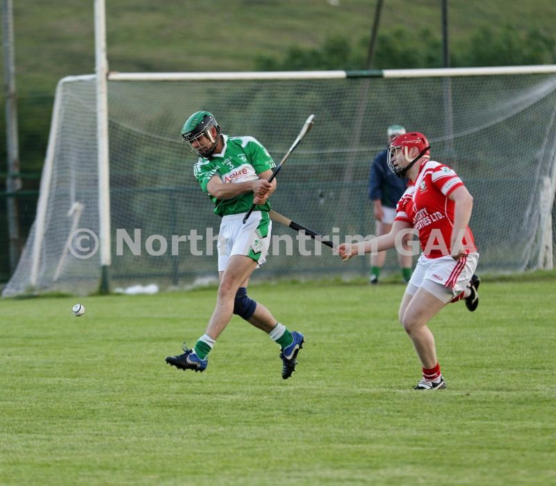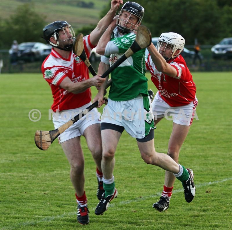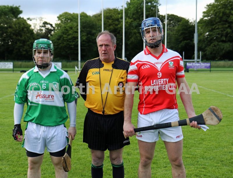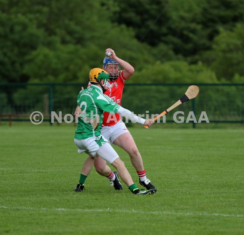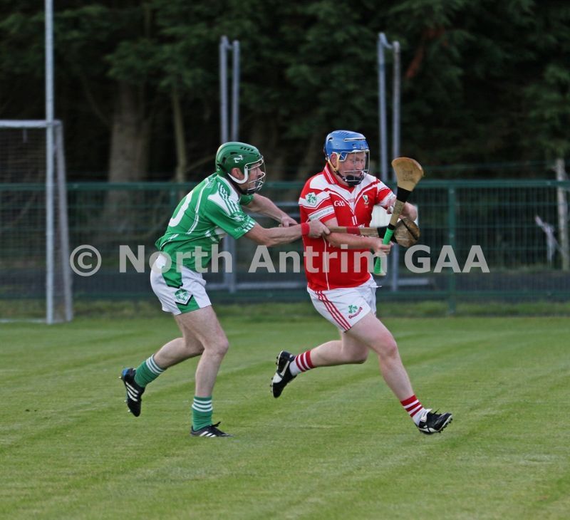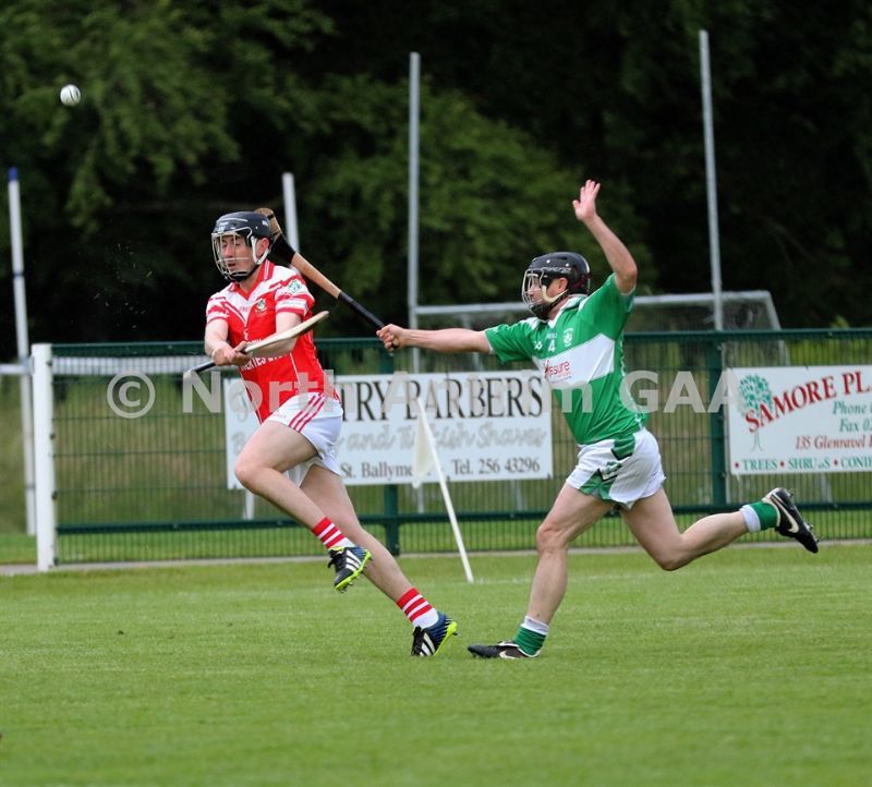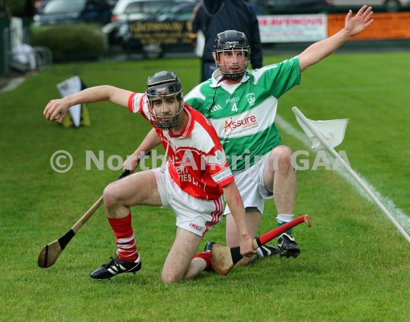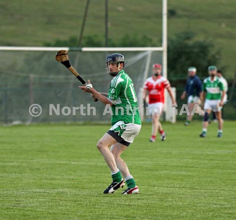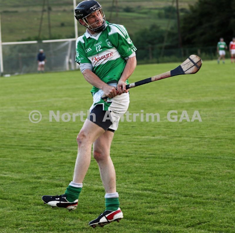 • North Antrim GAA Chairmain Owen Elliott presentring Loughgiel Shamrocks Captain with the Junior Feis Hurling Shield Trophy
