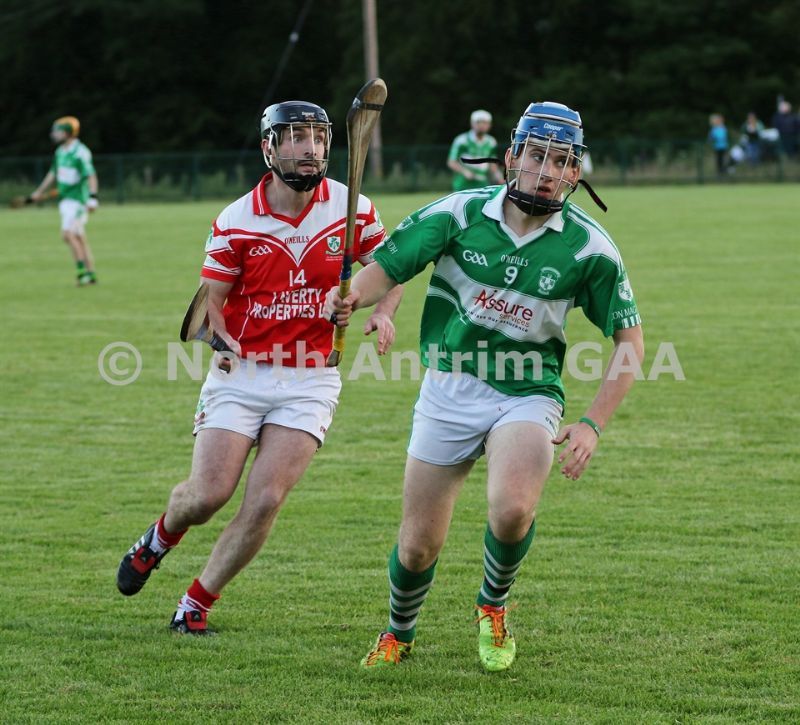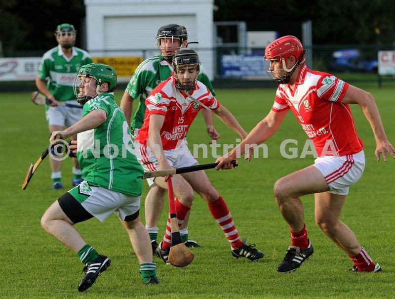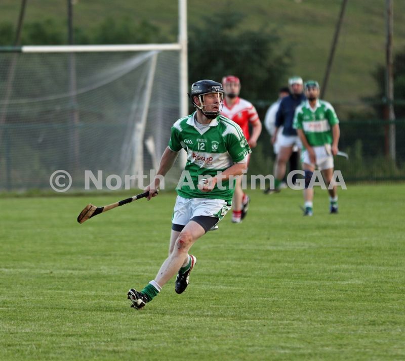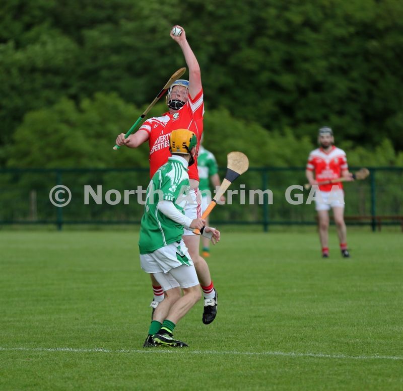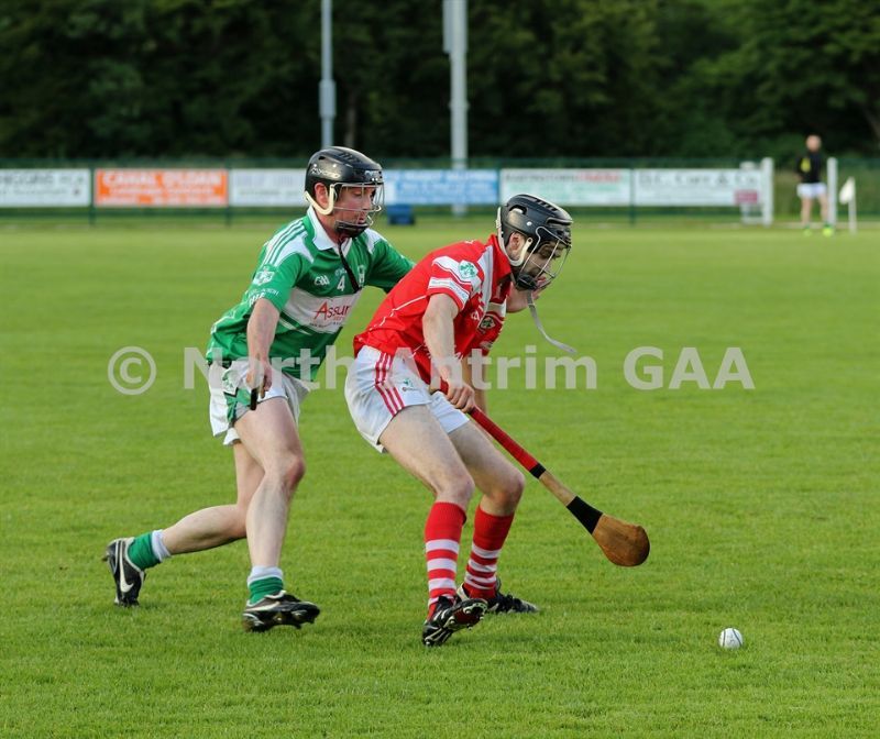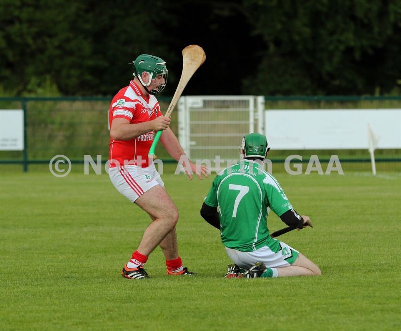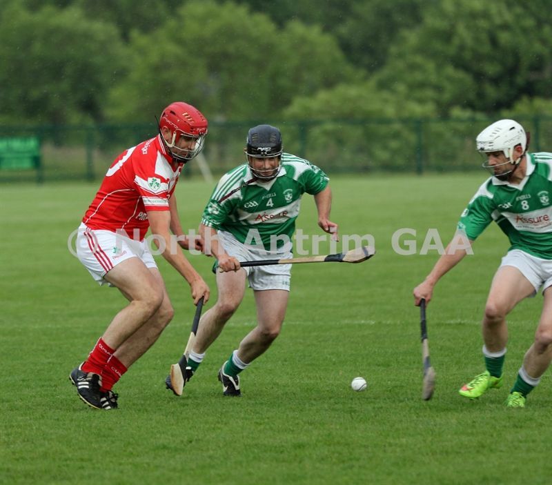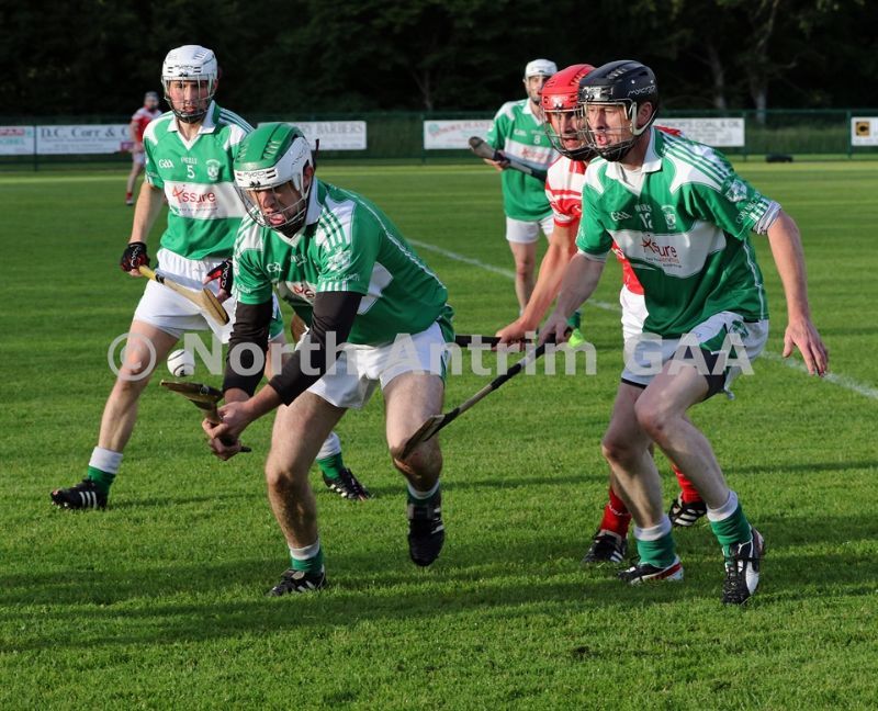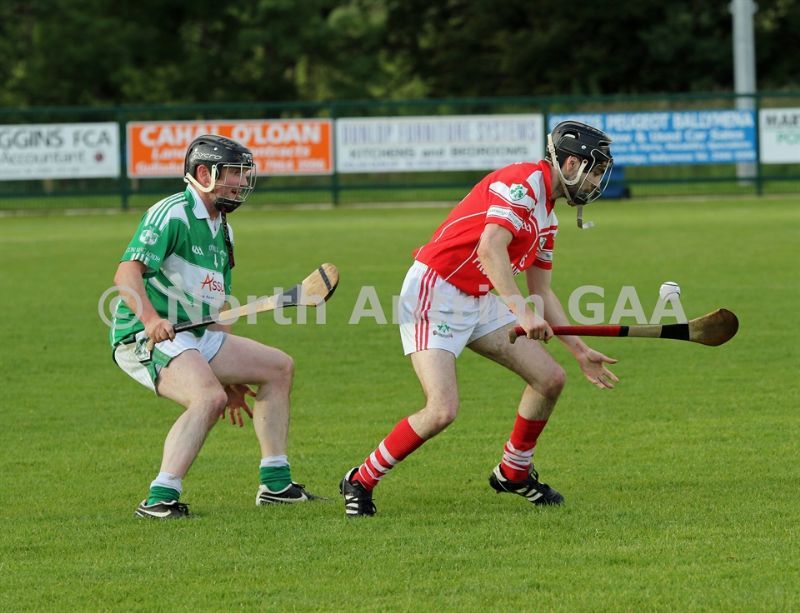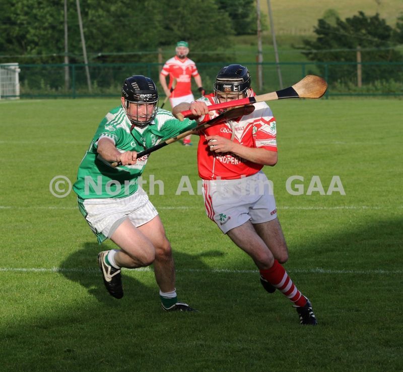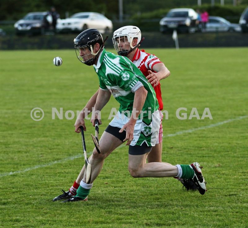 • North Antrim GAA Chairmain Owen Elliott presentring Loughgiel Shamrocks Captain with the Junior Feis Hurling Shield Trophy