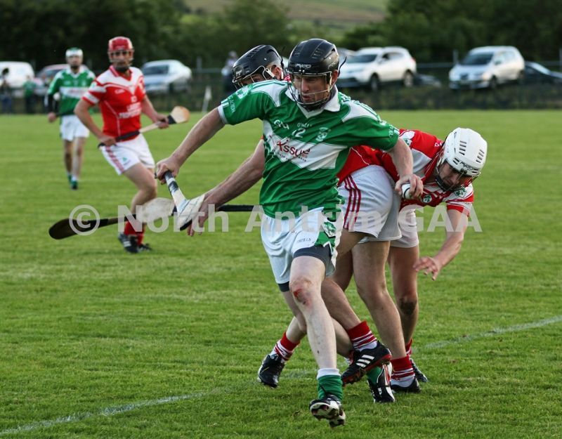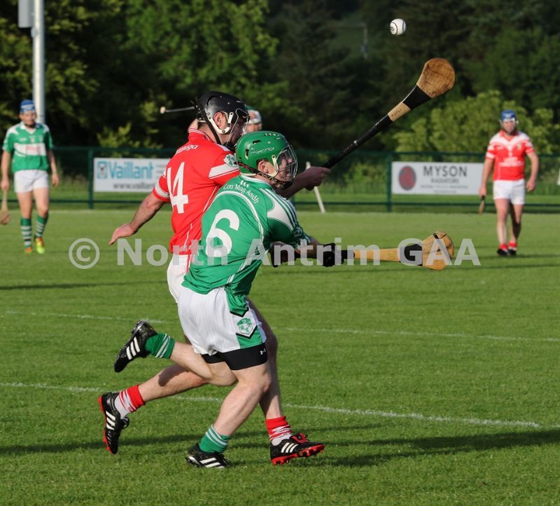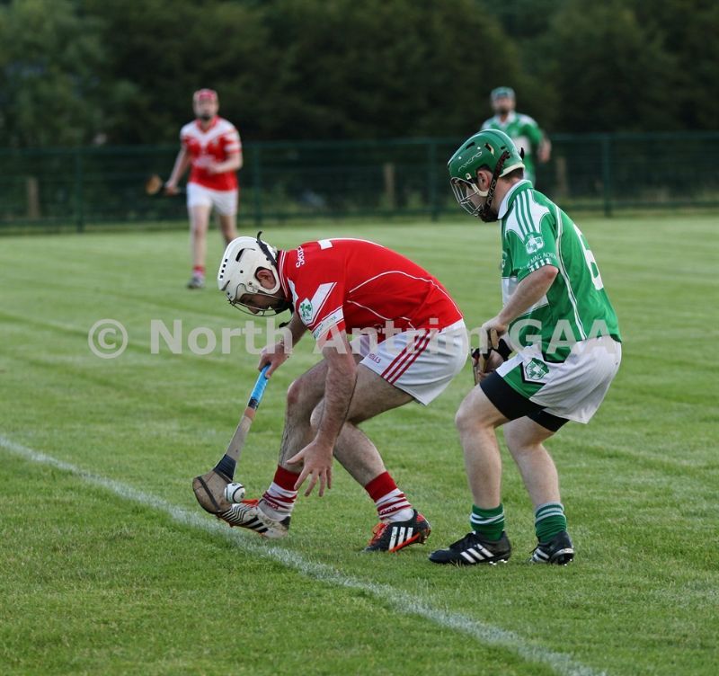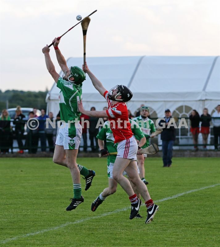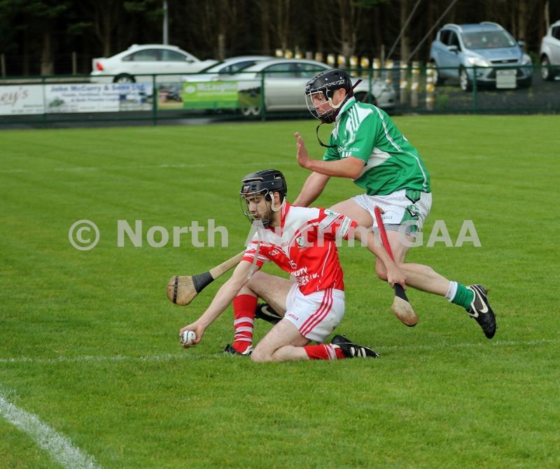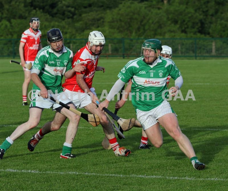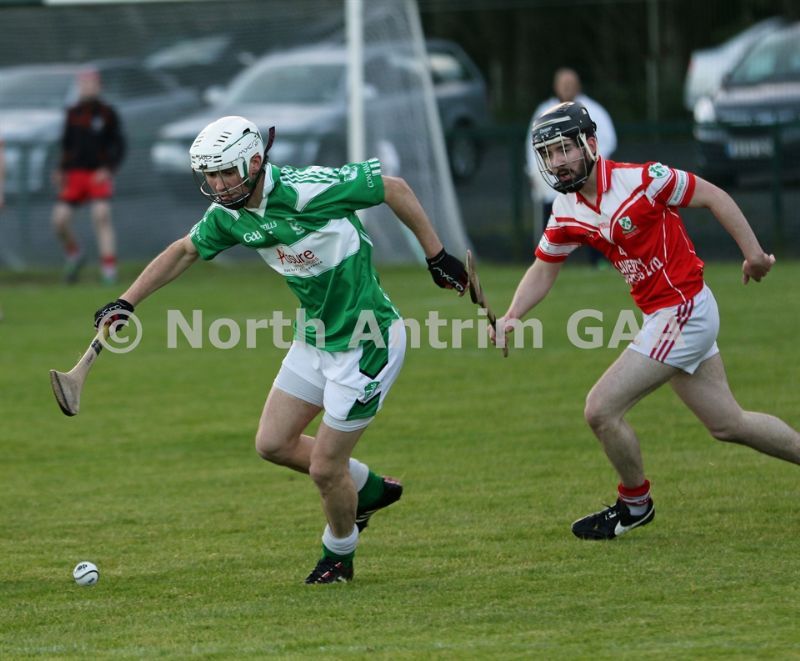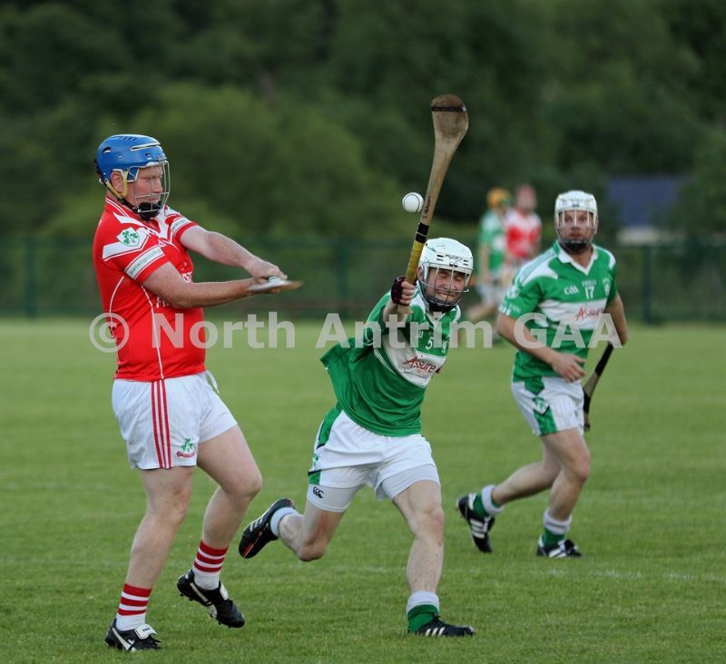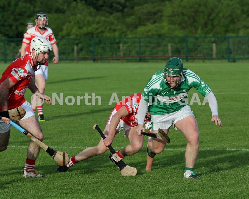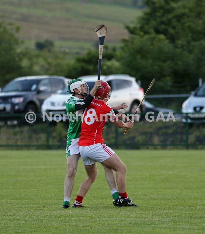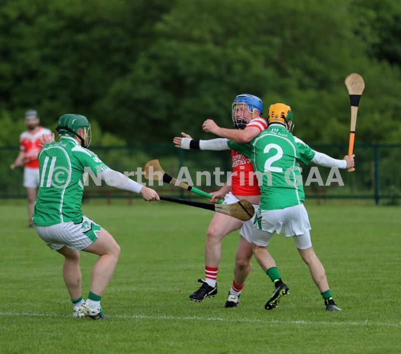 • North Antrim GAA Chairmain Owen Elliott presentring Loughgiel Shamrocks Captain with the Junior Feis Hurling Shield Trophy