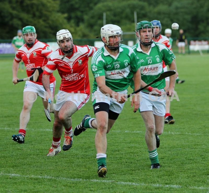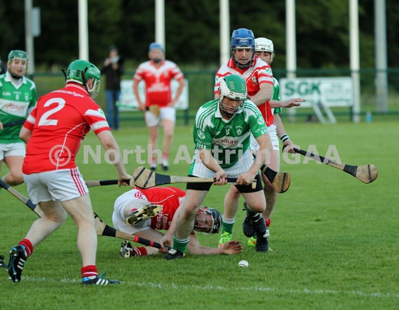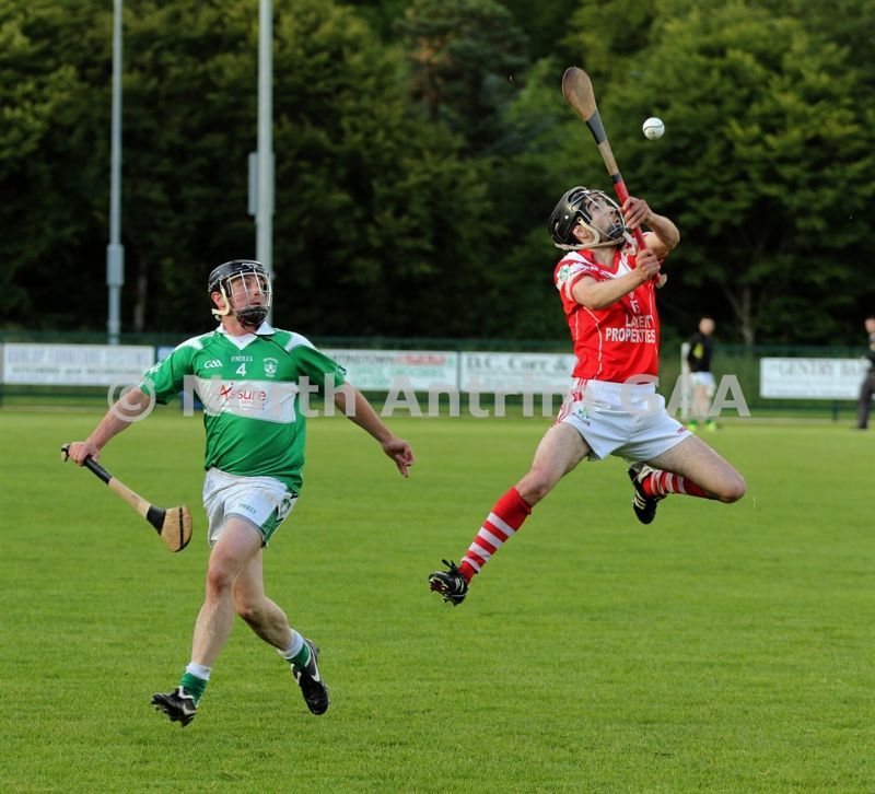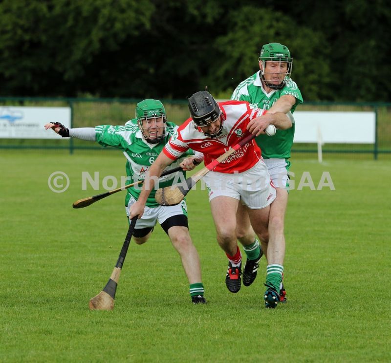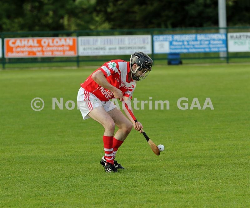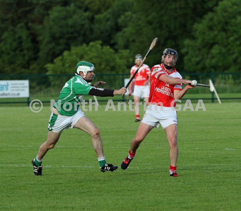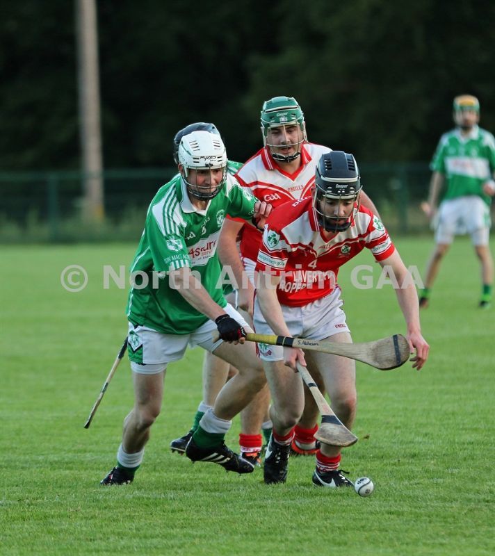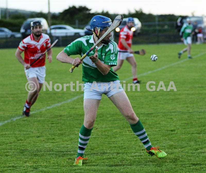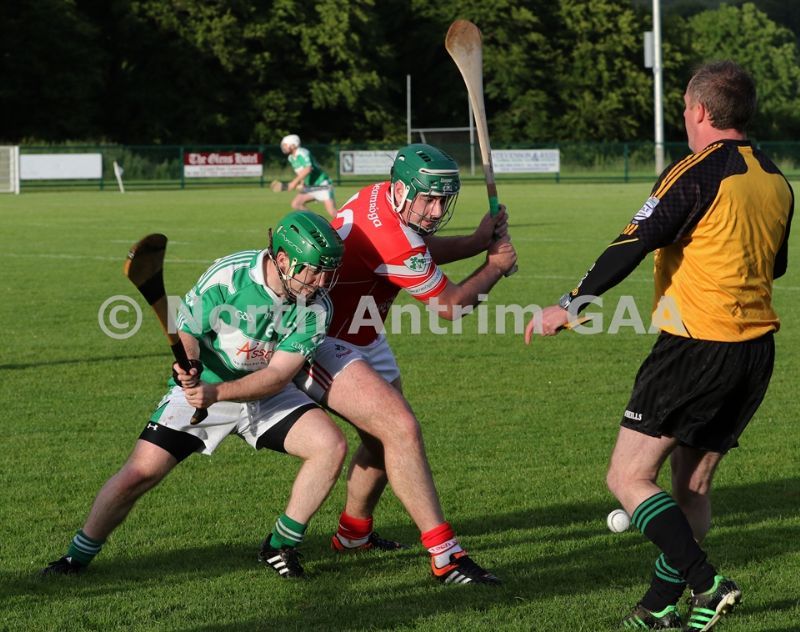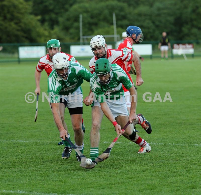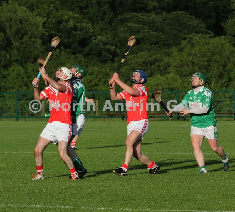 • North Antrim GAA Chairmain Owen Elliott presentring Loughgiel Shamrocks Captain with the Junior Feis Hurling Shield Trophy
